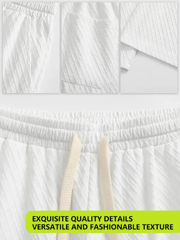 Coofandy Men's Summer Beach Outfit 2-Piece Short Sleeve Shirt & Shorts Set in Premium Linen Texture Fabric for Vacation & Casual Wear