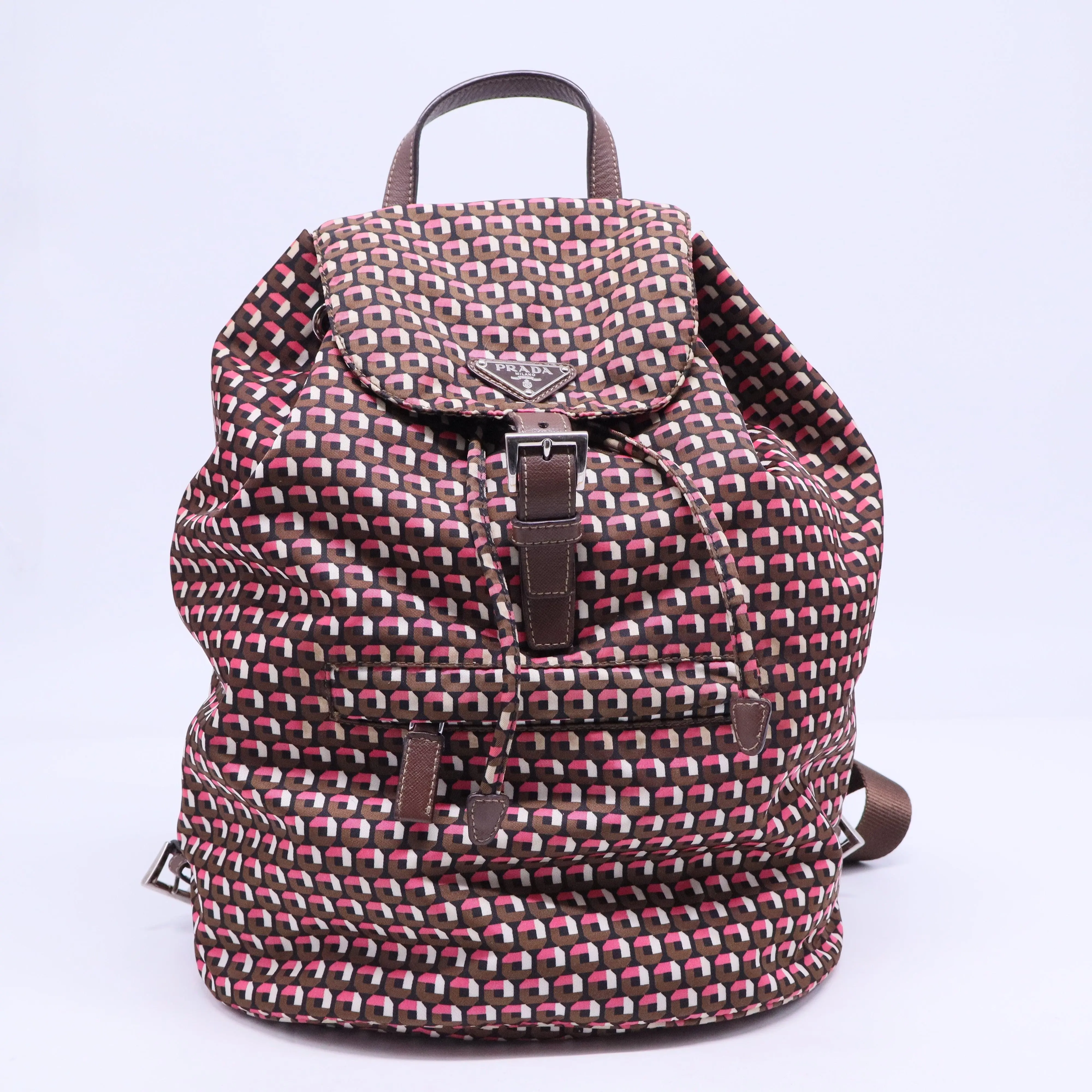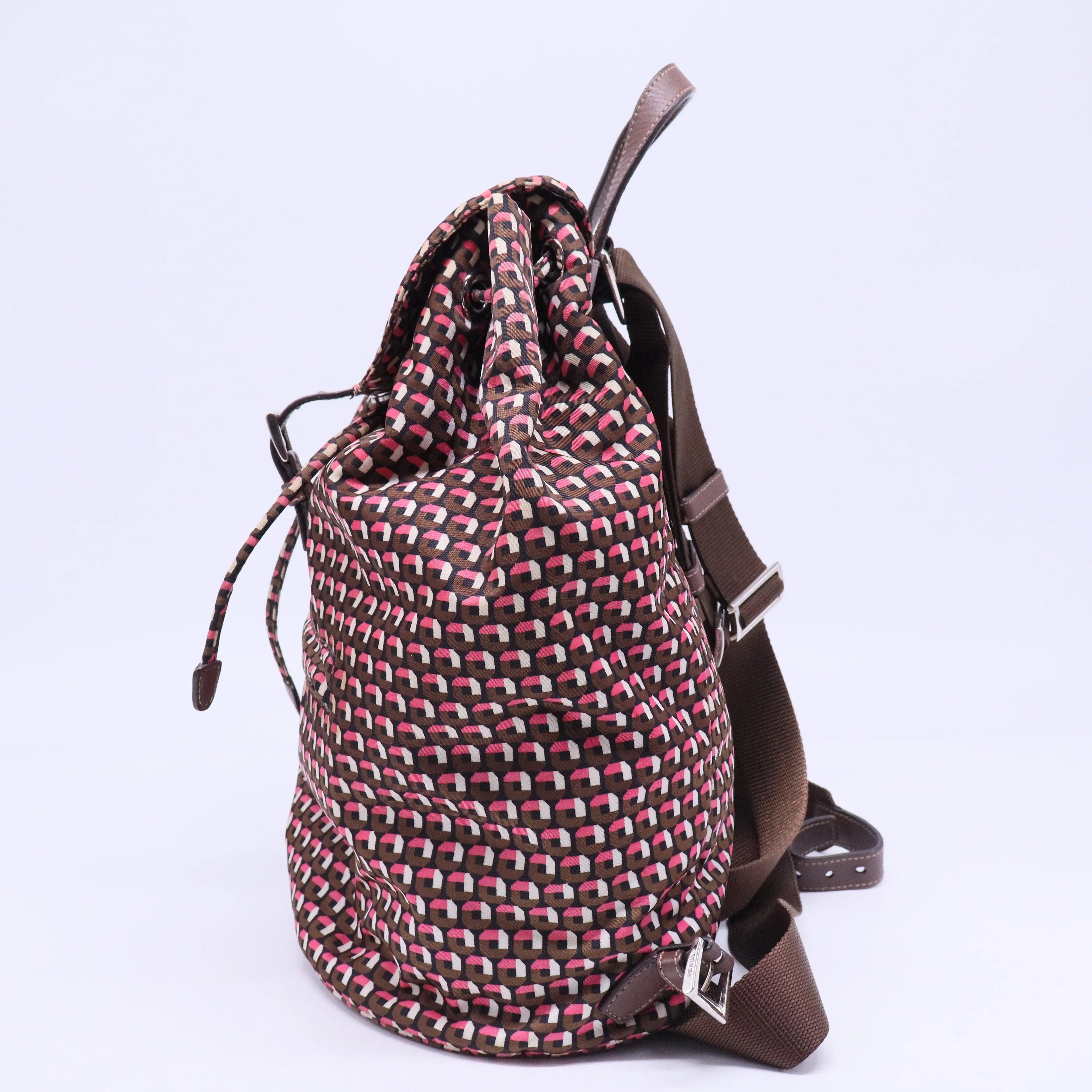 Pre-owned PRADA Canvas Backpacks Brown/Pink Re Nylon Patterned Backpack B20788