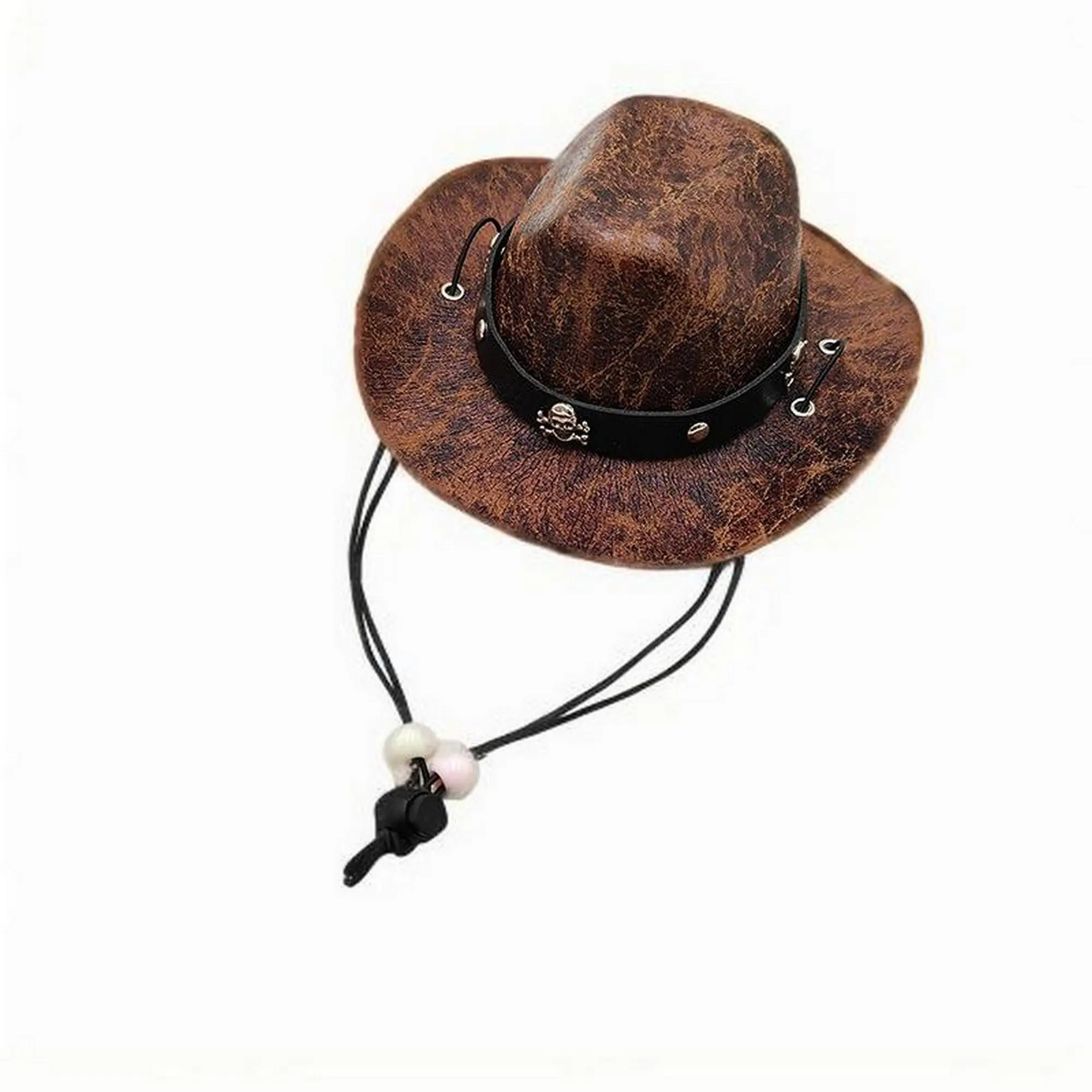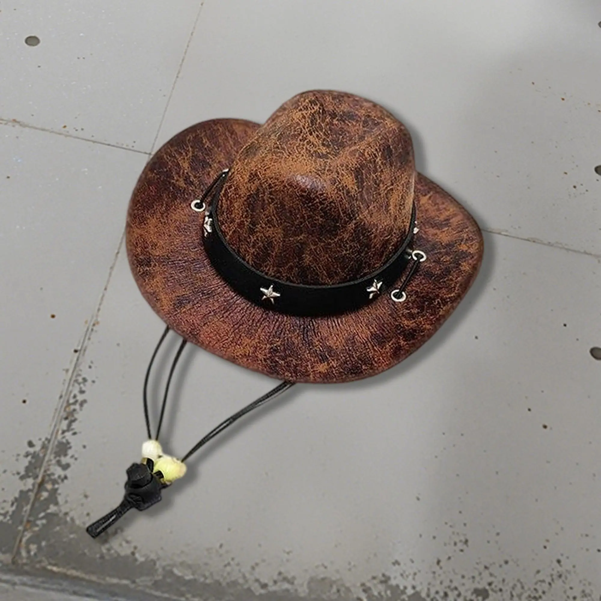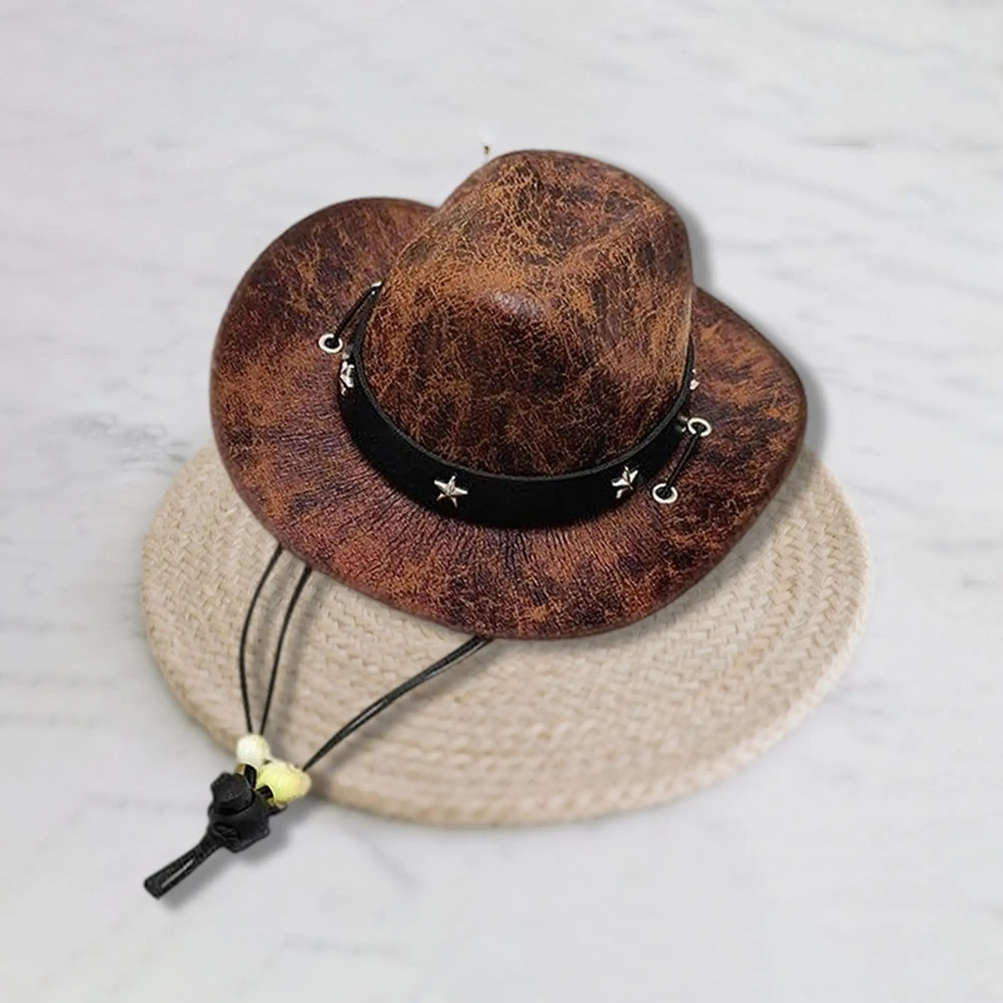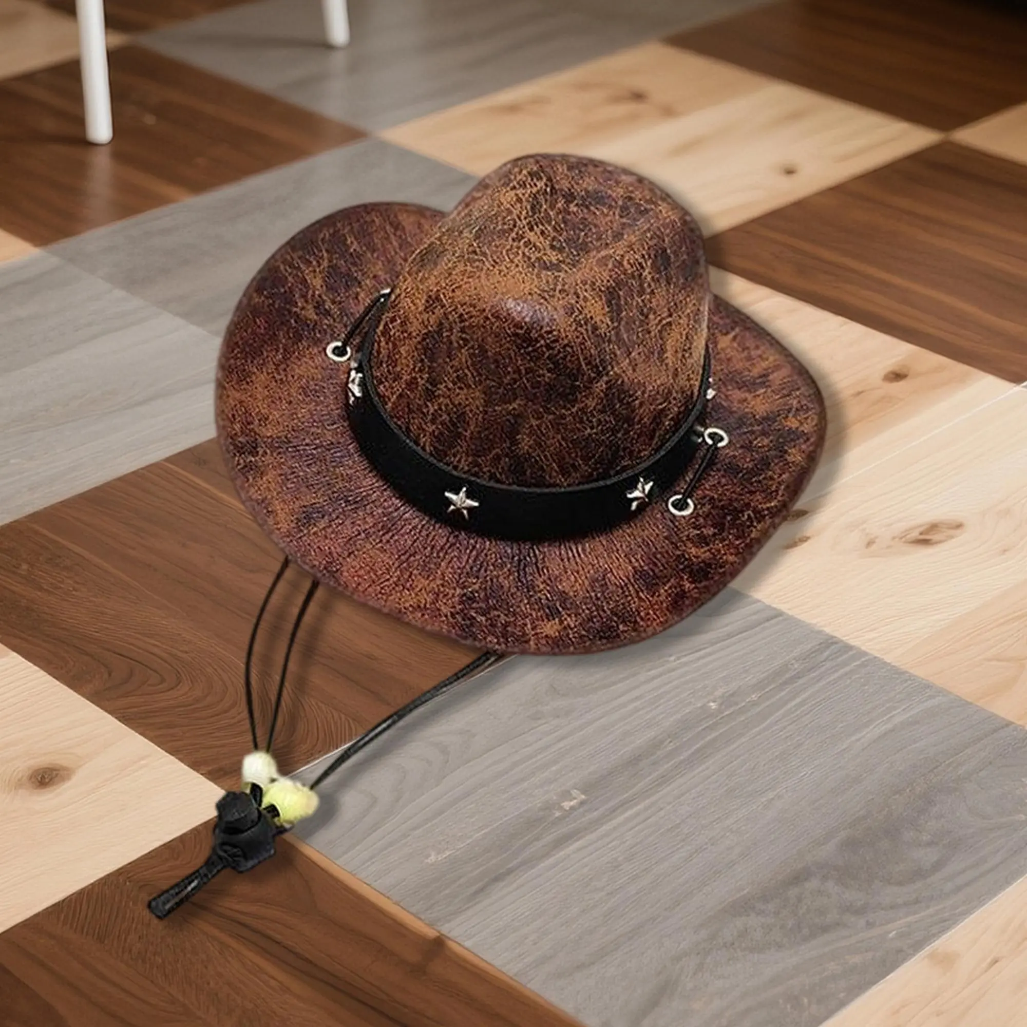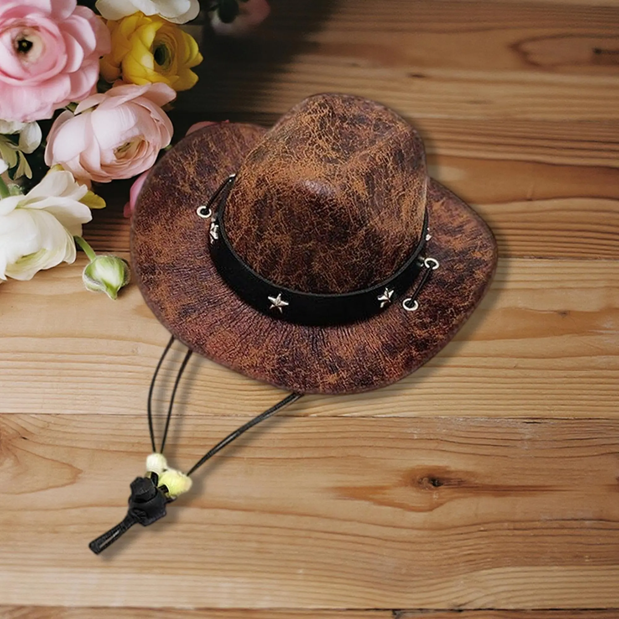 Pet Cowboy Hat with Bandana Set Adjustable Western Style Costume for Small Medium Large Dogs Cats Halloween Party Dress Up
