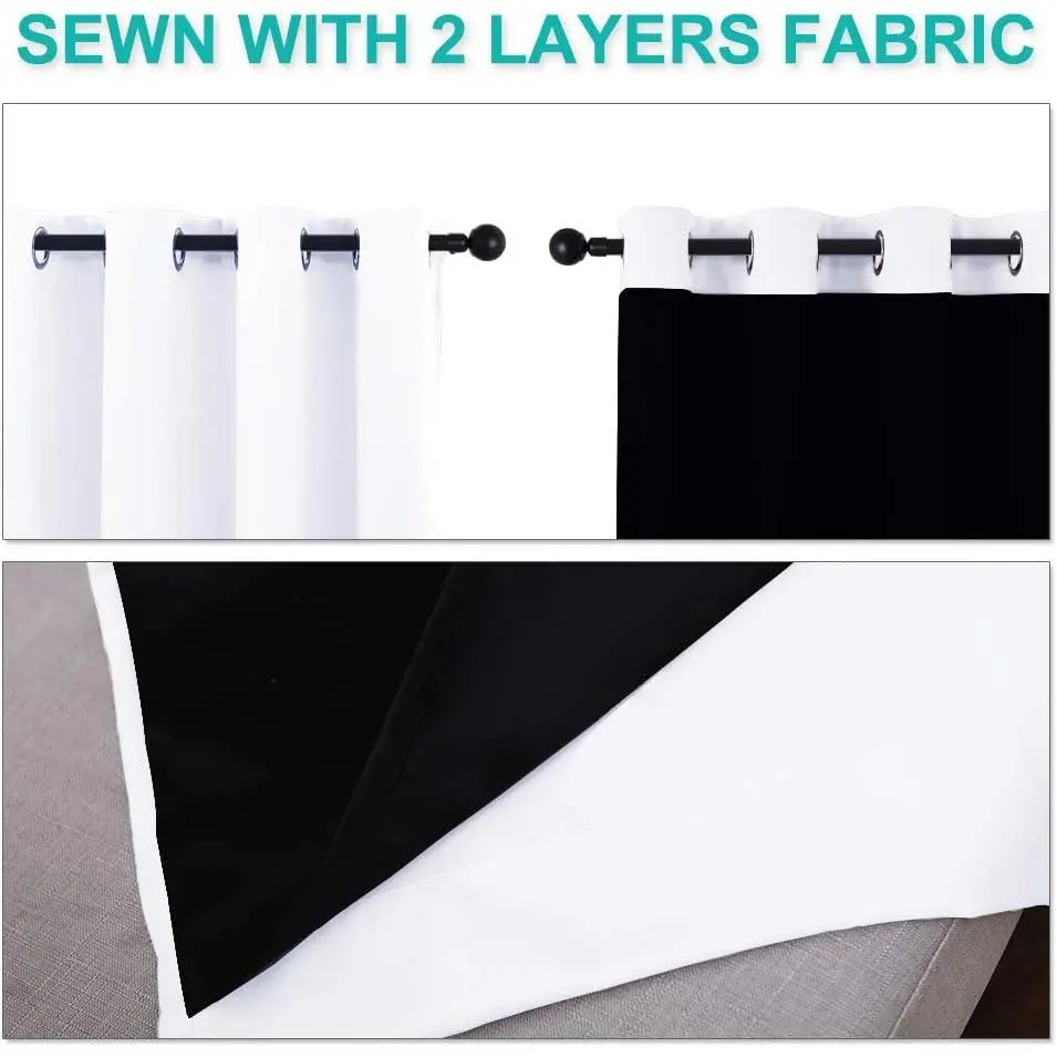 PolyesterImportedREADY MADE: 1-panel Classic Lined Curtain measured 42" wide x 63" long per package.The unique design of silver grommet (1.6-inch inner diameter) creates casual elegance for your house, which makes the curtains easy to install and slide.100% BLACKOUT: The best blackout curtains on the market.Sew in black liner backing makes the drapes thick enough to completely keep out the 100% SUNLIGHT and UV RAY.The greatest benefit is to offer you a real dark environment, bringing you a good night's sleep during the day.NOISE REDUCING: Heavyweight Blackout Lined Curtain Panels can be a good sense of drape, making the window completely closed, to achieve SOUNDPROOF.The effect of absorbing sound is 2 times higher than the ordinary 1-layer of curtains so that at any time you are not disturbed by noise.UNIQUE DESIGN: Draperies constructed with 2 layers are all triple weave blackout fabric, balancing room temperature by insulating against summer HEAT and winter CHILL meanwhile protect PRIVACY. No chemical coating, no formaldehyde, ECO-friendly, bring harmonious to your family.EASY CARE: Good quality finishing will withstand years of use.Machine washable and Wash the water temperature below 86℉.Mild detergent no bleaching.Low-temperature ironing.Don’t use sharp things scratching curtains.