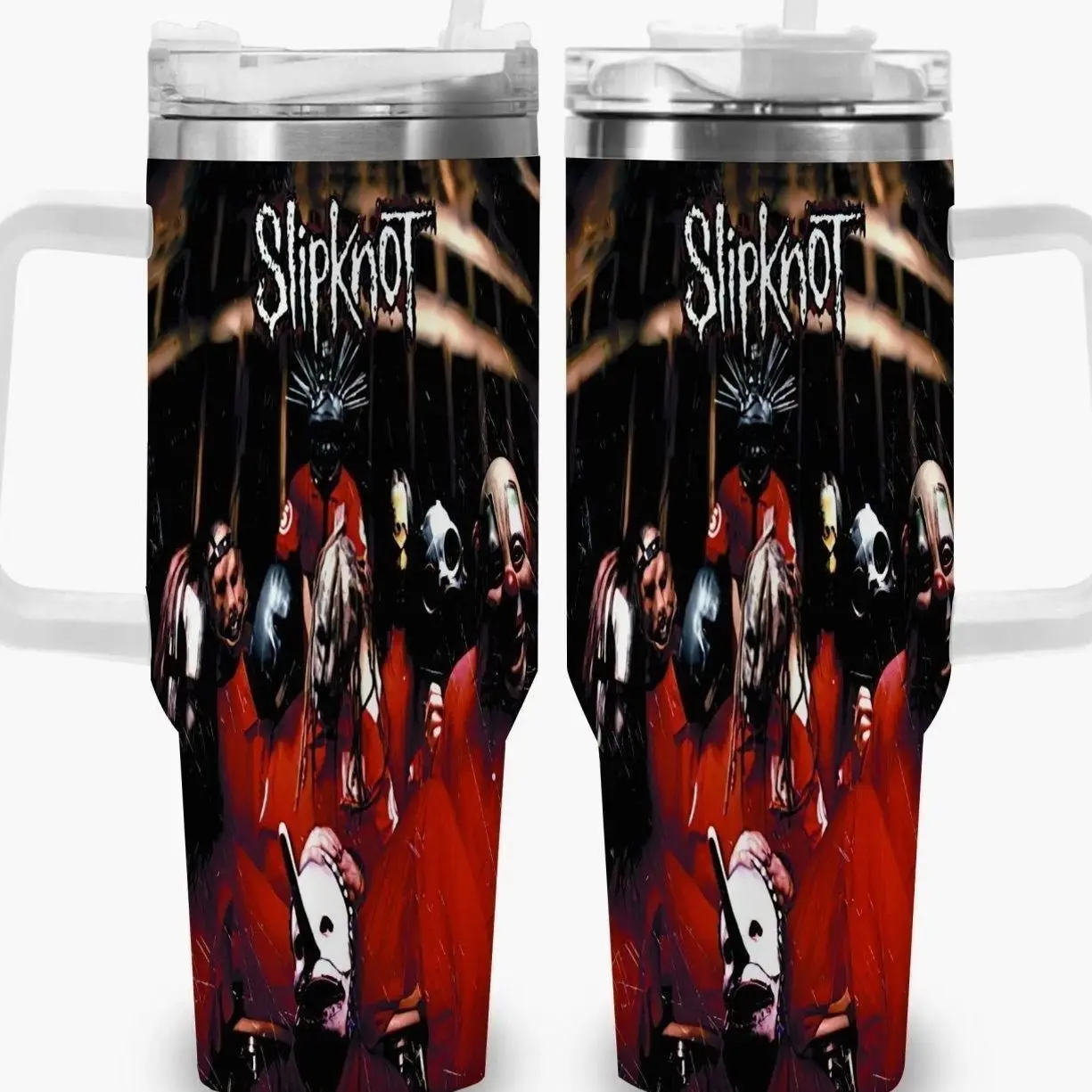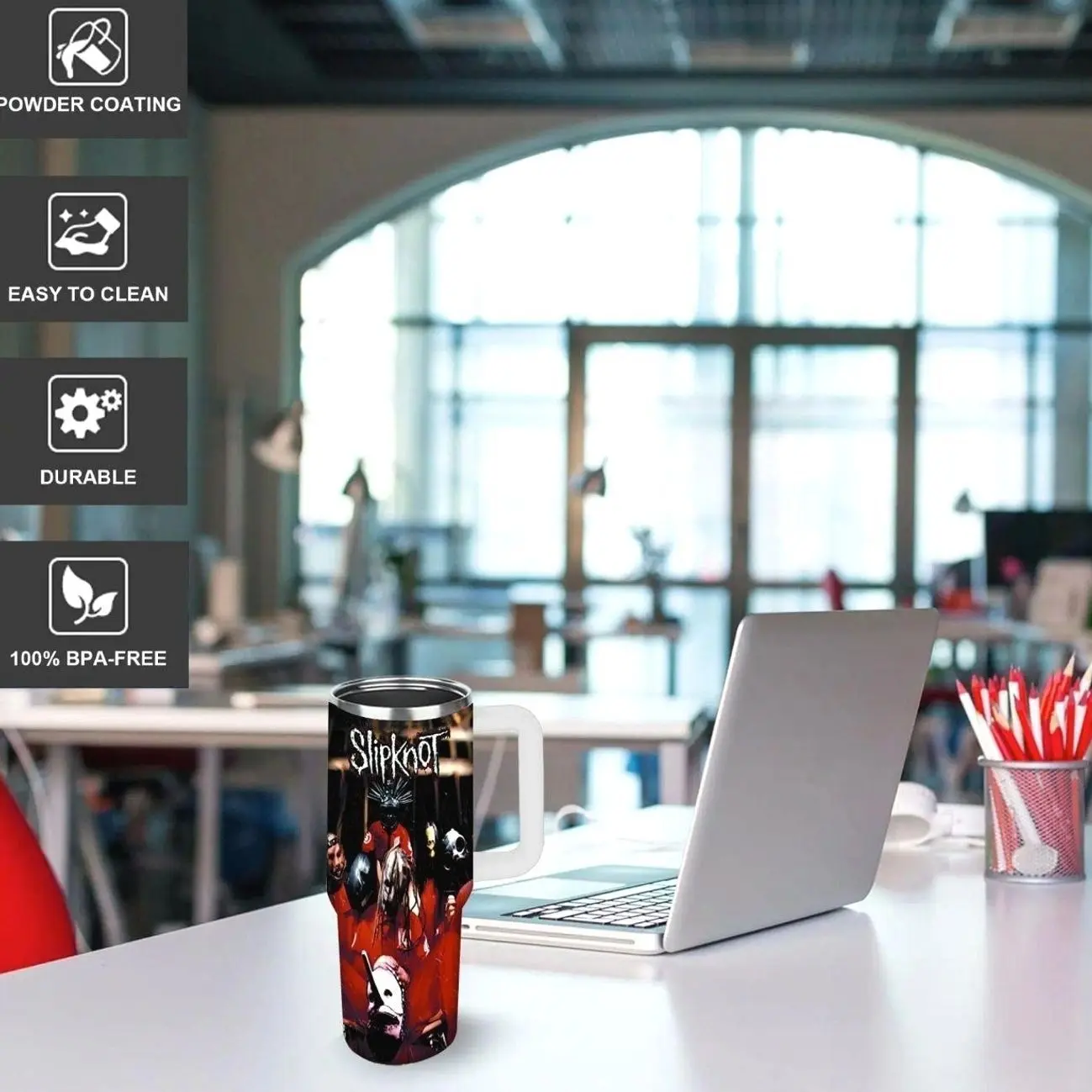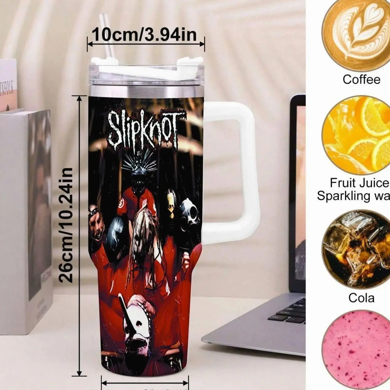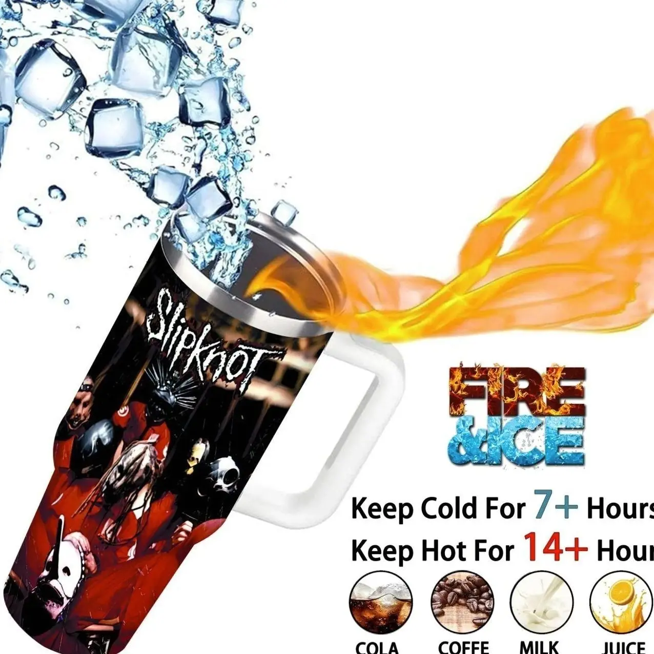 1pc 40oz Slipknot Band Tumbler with Lid, Insulated Travel Mug, Gift for Women Men, Ideal for Halloween, Independence Day, Memorial Birthday Gift, Coffee Cup, weird stuff