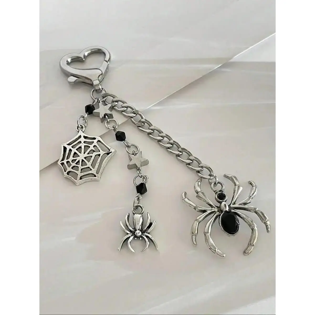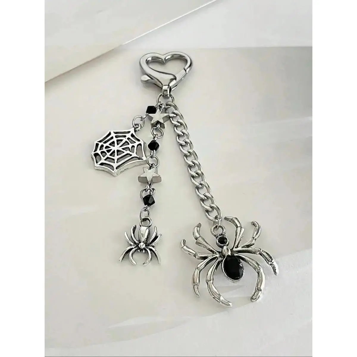 Cute Gothic Style Spider Web Design Keychain, Gothic Cross Keychain for Women & Men, Fashion Accessories for Daily Use, Halloween Gift