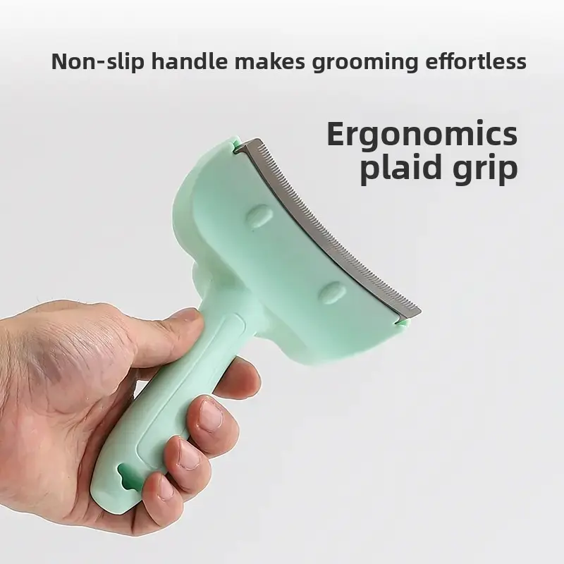 This tool features a floating hair removal curved knife head comb. Perfect for detangling and managing pet hair. The curved design ensures smooth and effective hair removal. Ideal for pet owners looking for a practical solution.