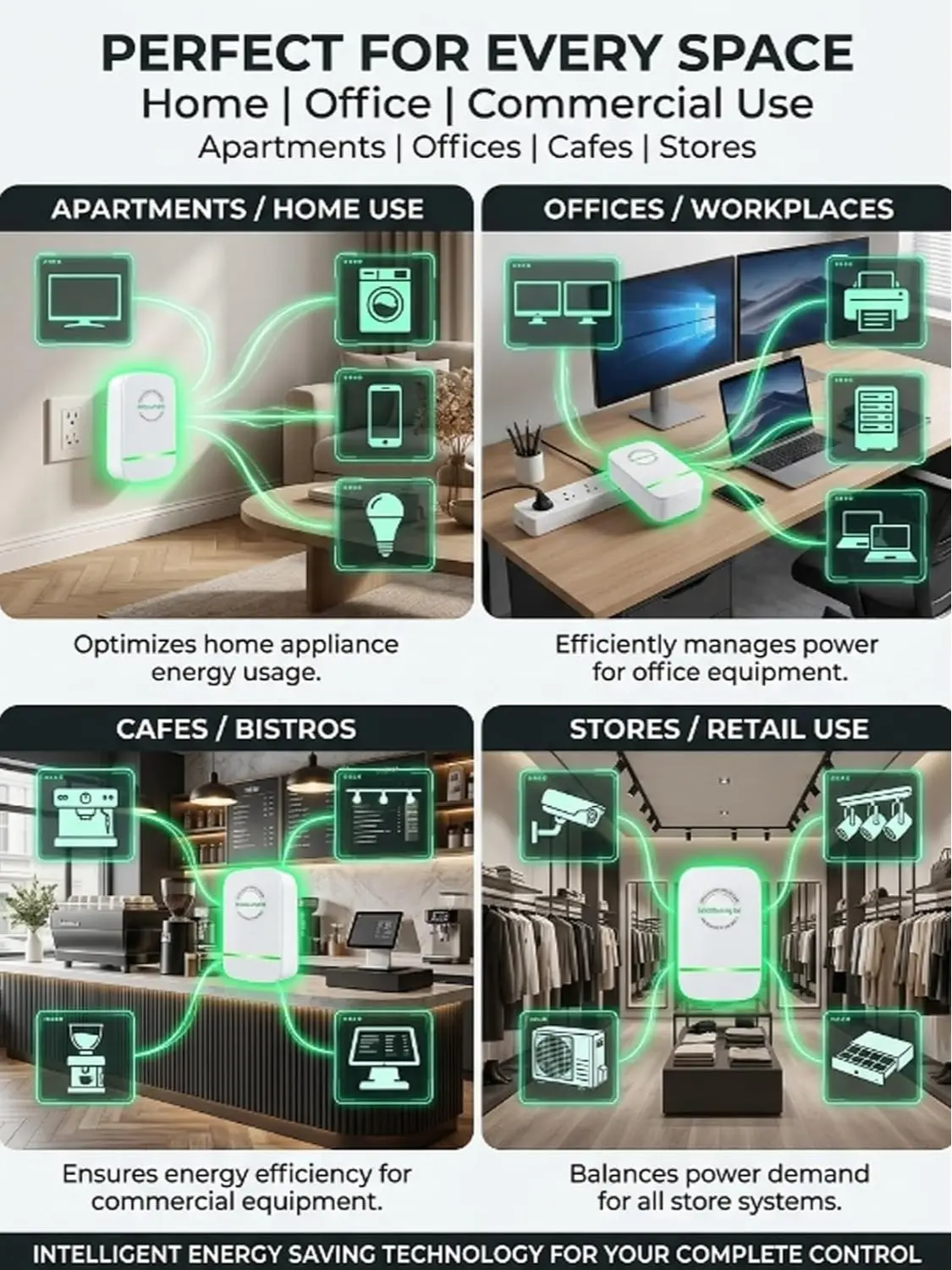 【Wide Voltage Range US Plugs】Compatible with US plugs (90V-250V), this 30KW energy-saving box is designed to work with most household appliances, ensuring optimal performance