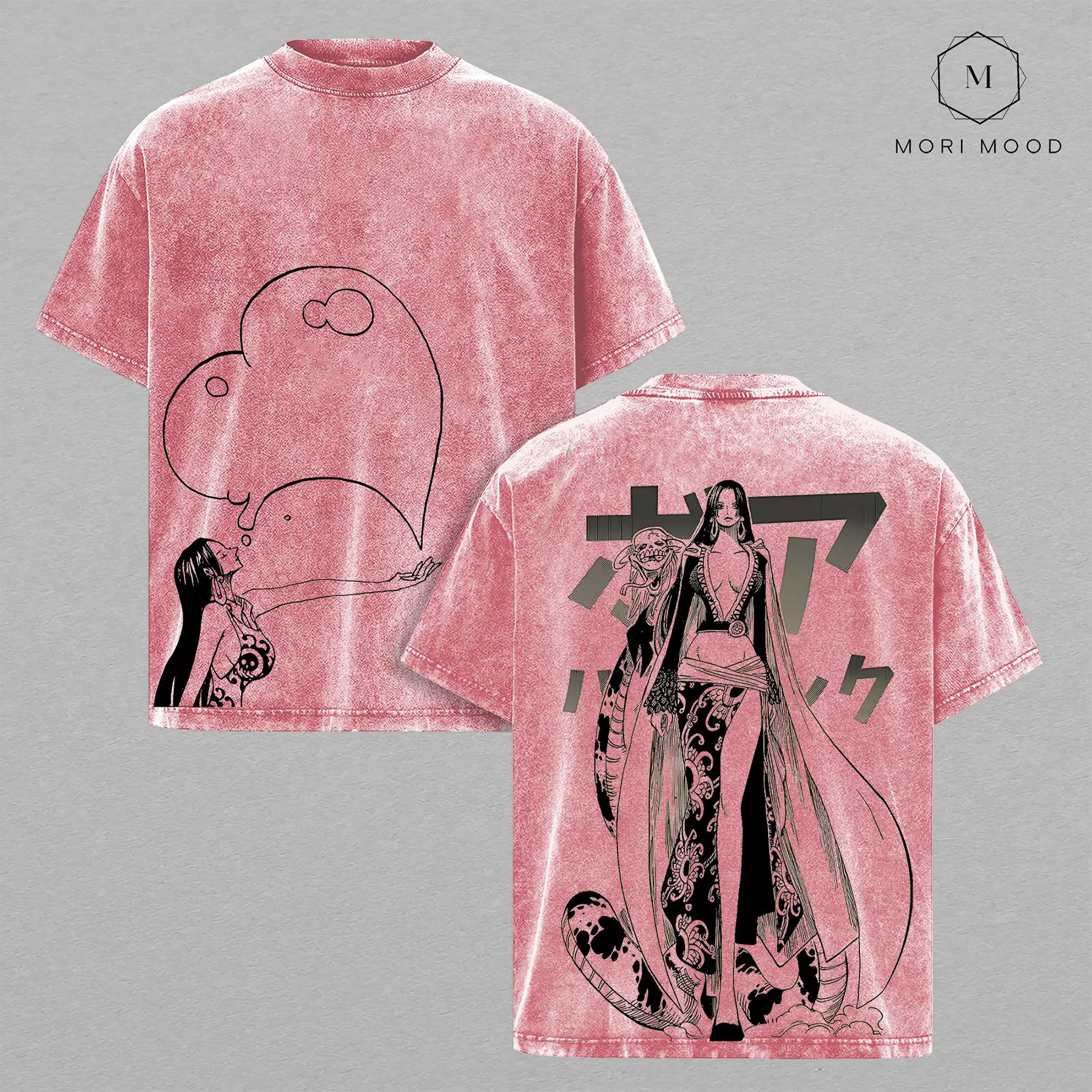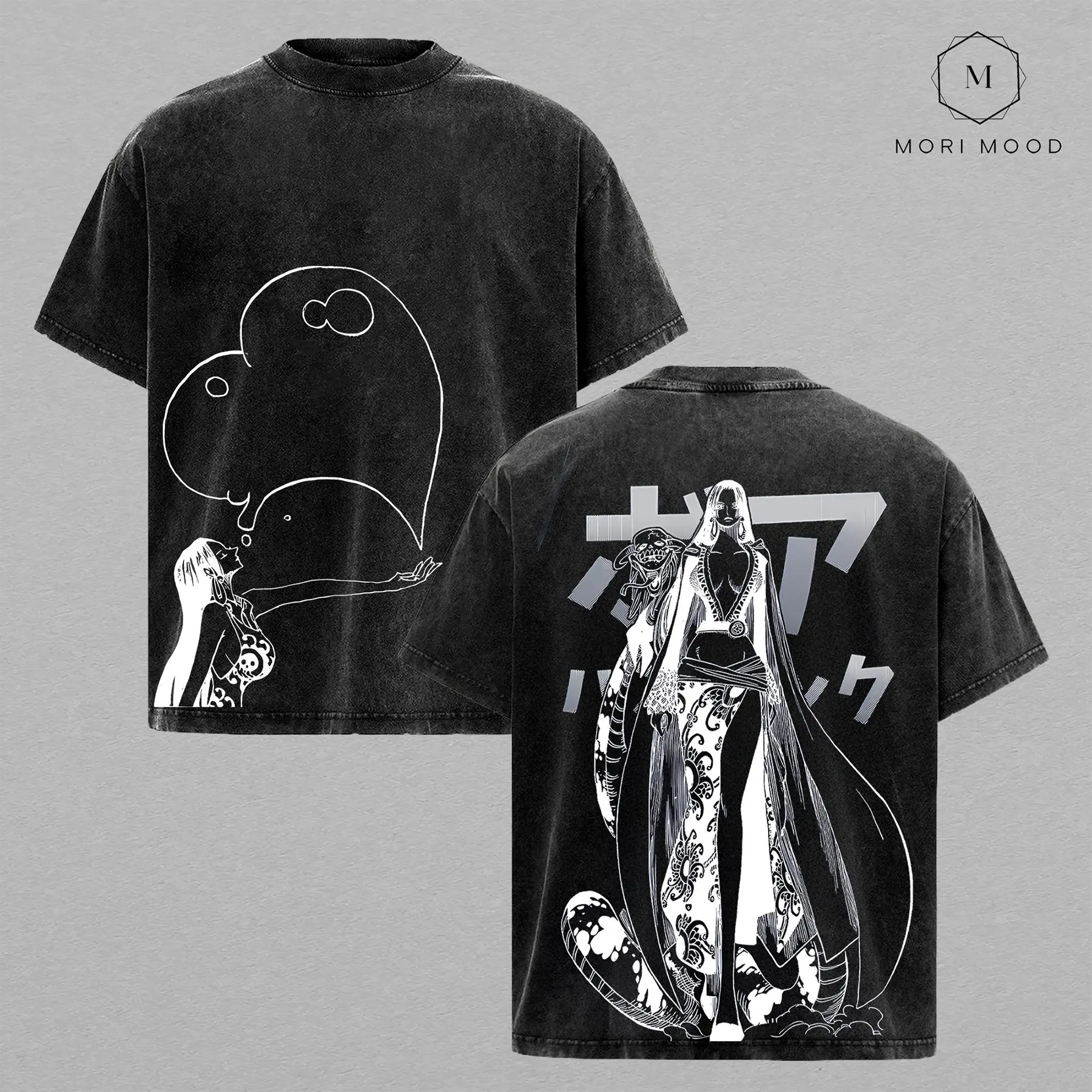 Boaa Hancock Pirates king Vintage Anime Tee, Washed Oversized Streetwear Shirt, Double Sided Graphic Top