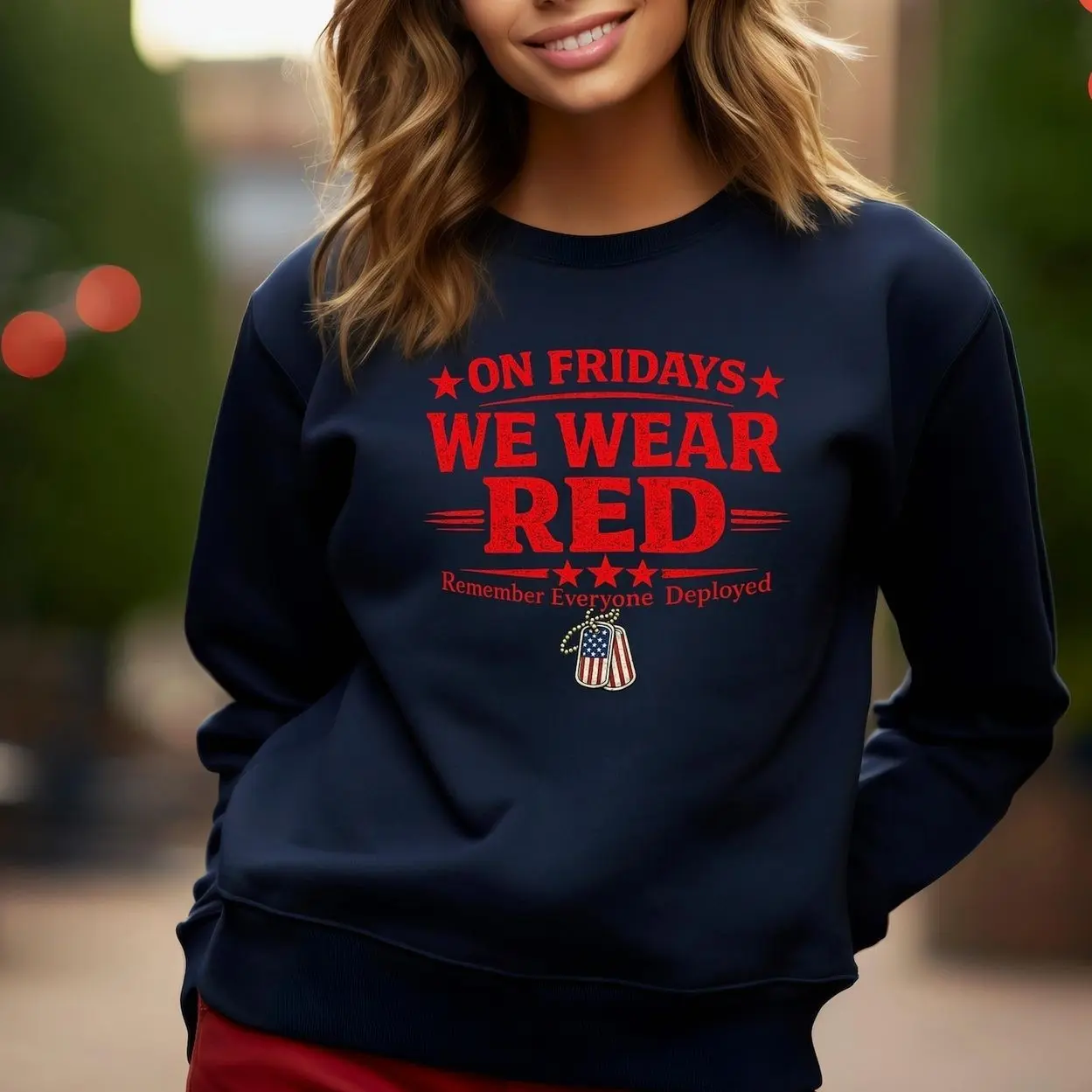5. Red Friday Remember Everyone Deployed Sweatshirt | Military Support Crewneck | Patriotic USA Veteran Pullover