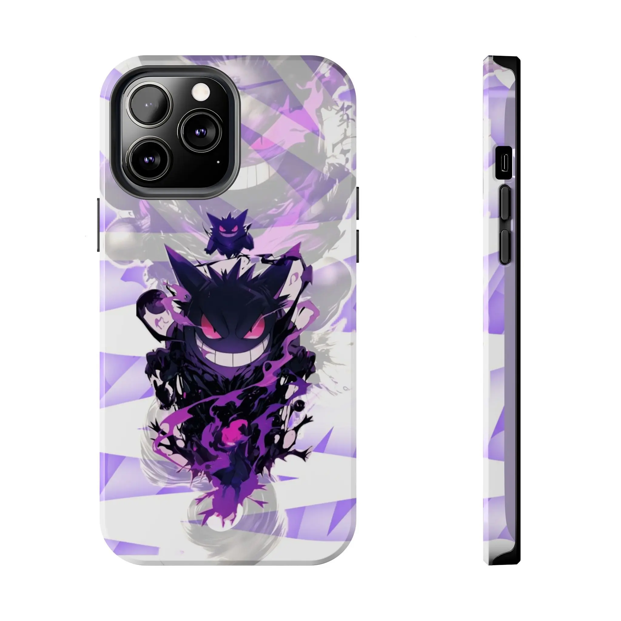Unleash the dark power of one of Pokémon's most beloved and formidable Ghost-types with this premium Gengar themed case. This design features a menacing, dark Gengar in its prime, surrounded by swirls of dark shadow and bright magenta spectral energy. It's a striking look that captures Gengar's mischievous yet powerful essence, perfect for any Pokémon fan who loves a darker aesthetic.