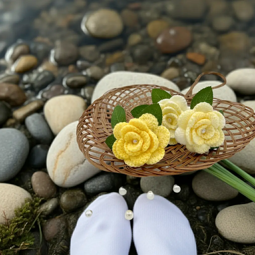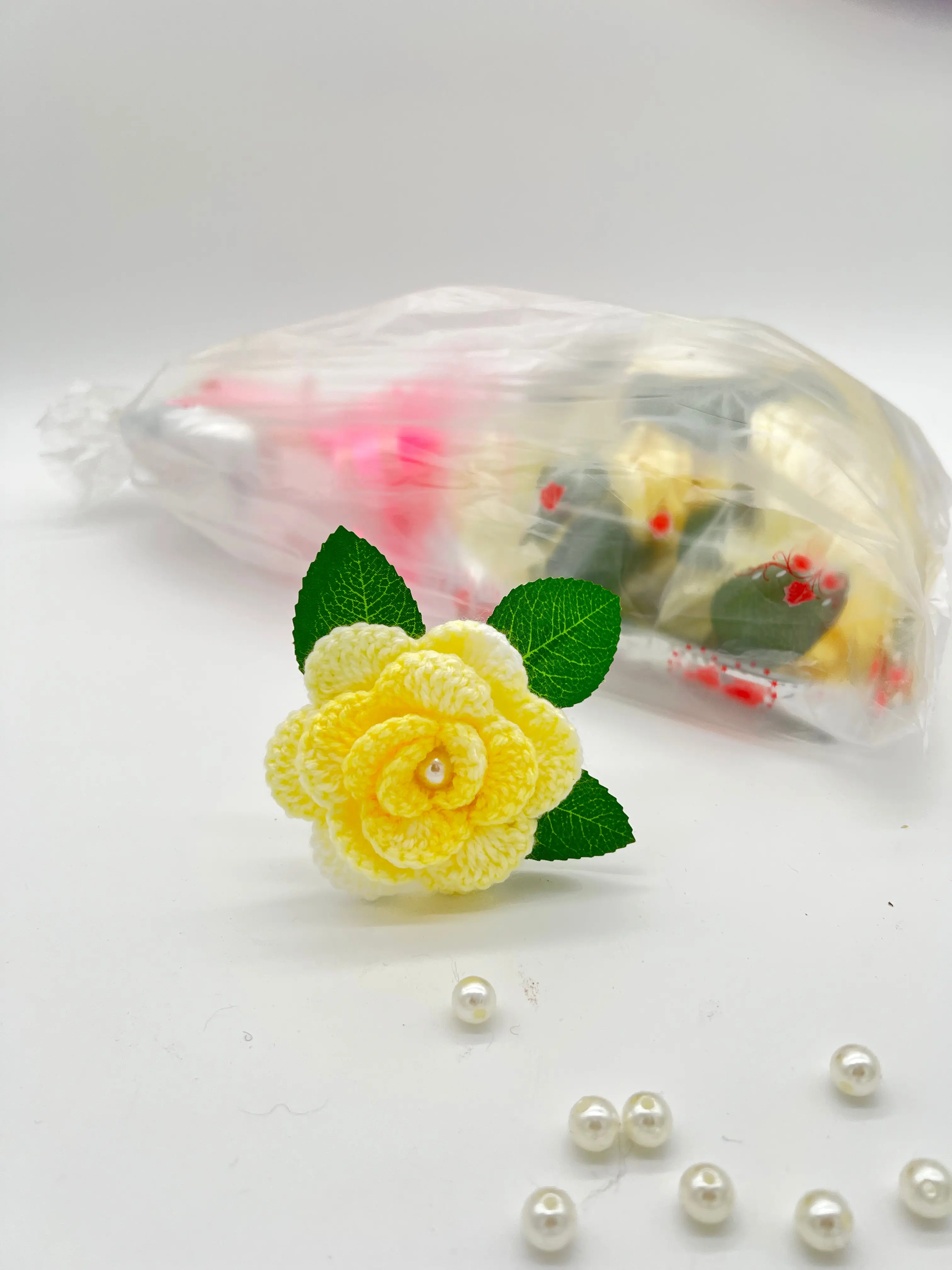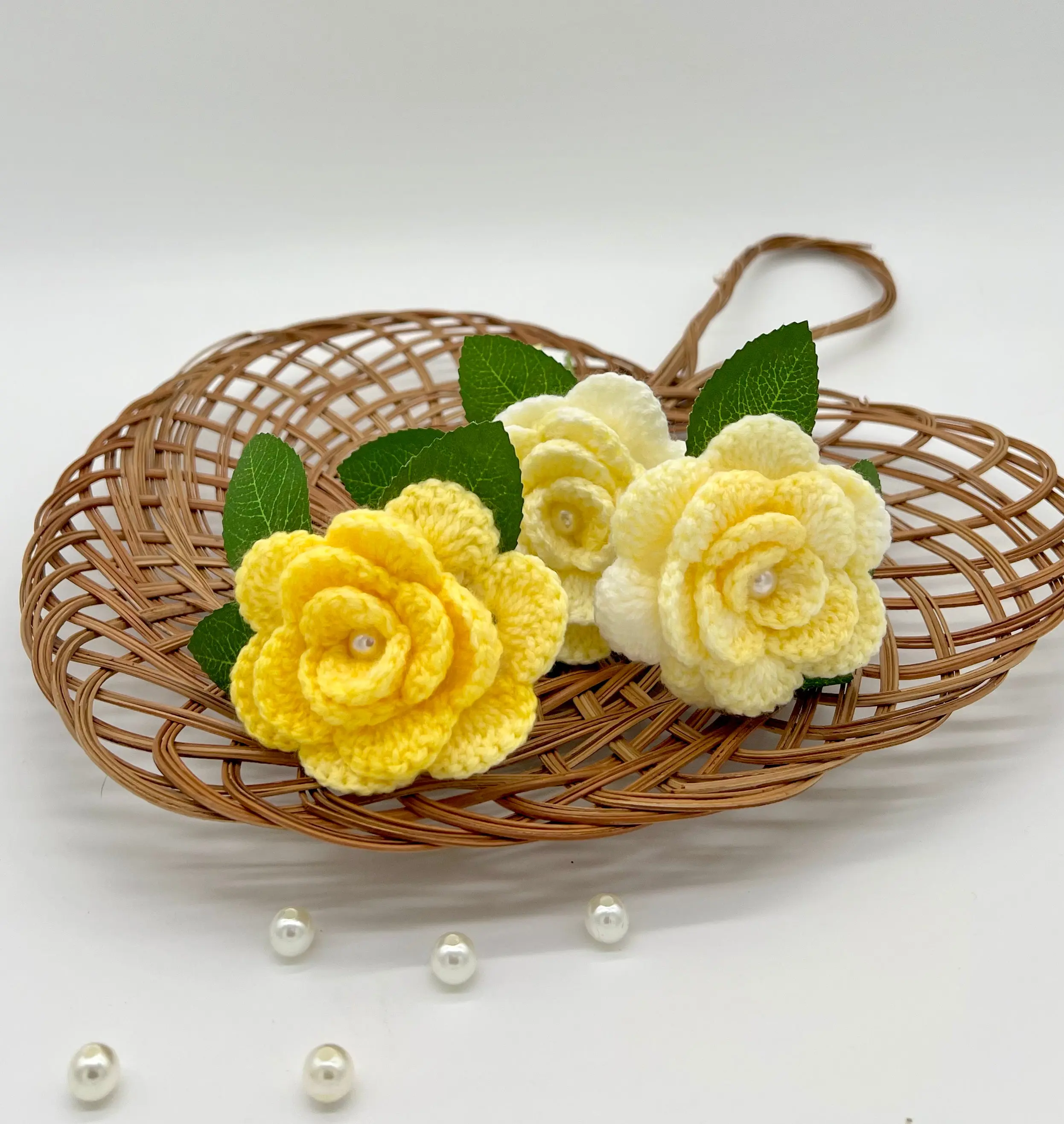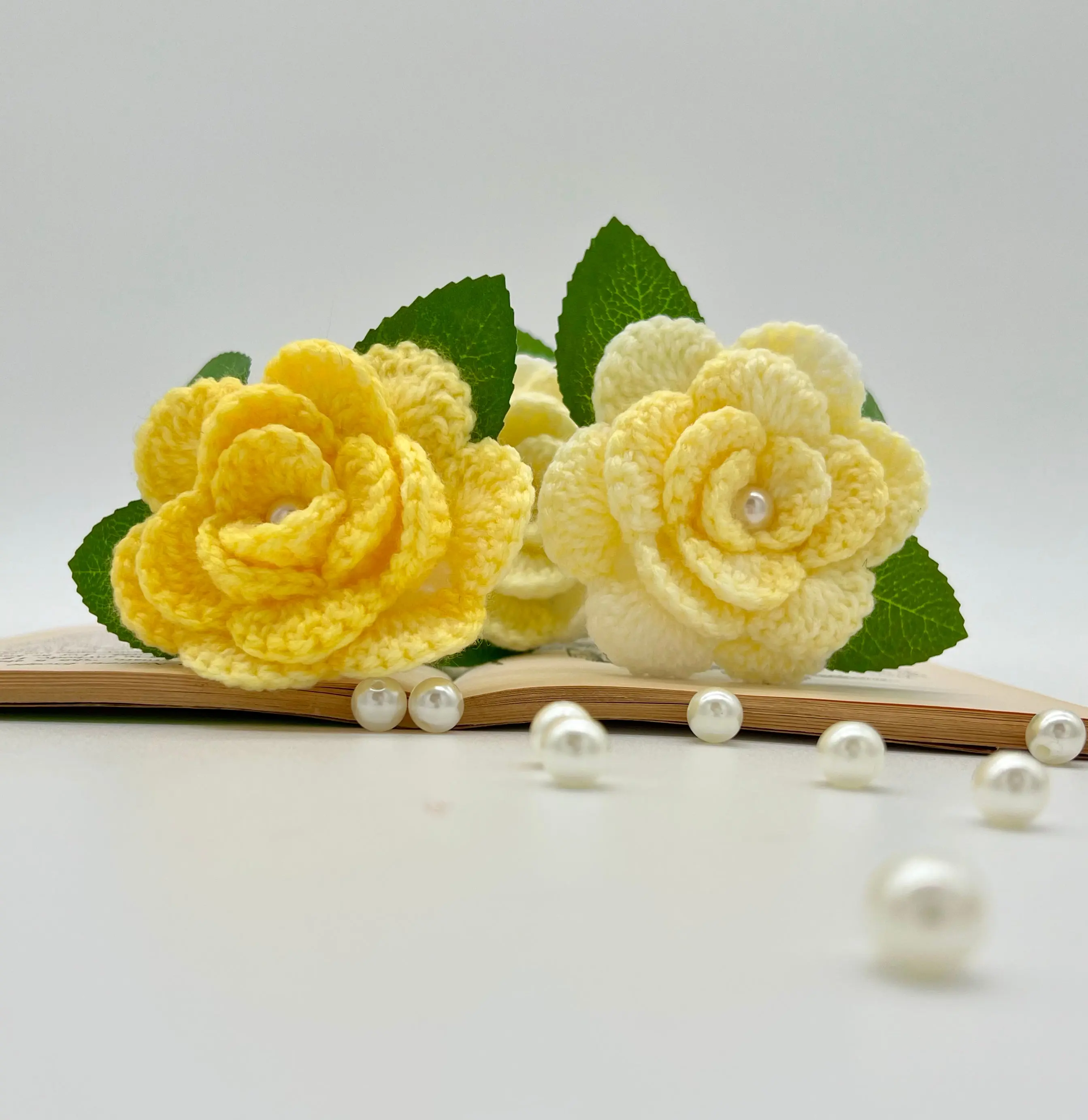 Each yellow rose is individually hand-crocheted from premium soft yarn and finished with a delicate pearl bead at the center for an elegant touch. With bendable wire stems and realistic plastic leaves, this bouquet can be styled to fit any vase or display — and stays beautiful indefinitely.
