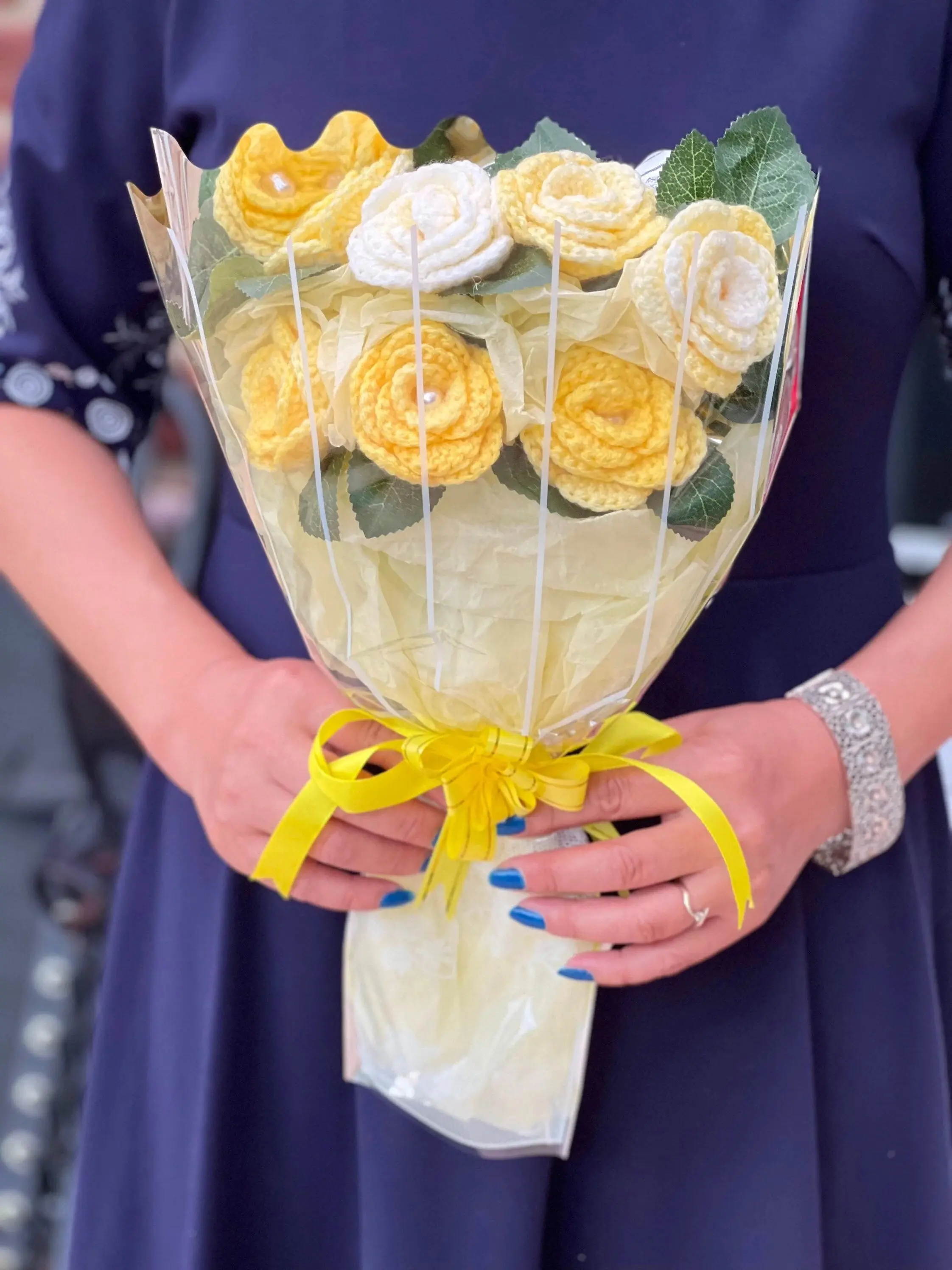 Bright, cheerful, and built to last forever — the yellow crochet rose bouquet that never wilts.