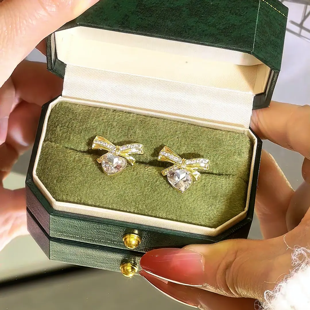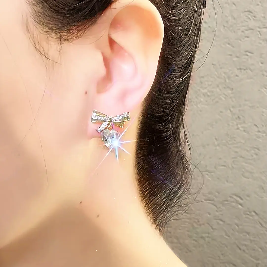 Premium Korean Style Earrings for Women, Trendy Shiny Zircon Bowknot Unique Ear Accessories Stud Earrings