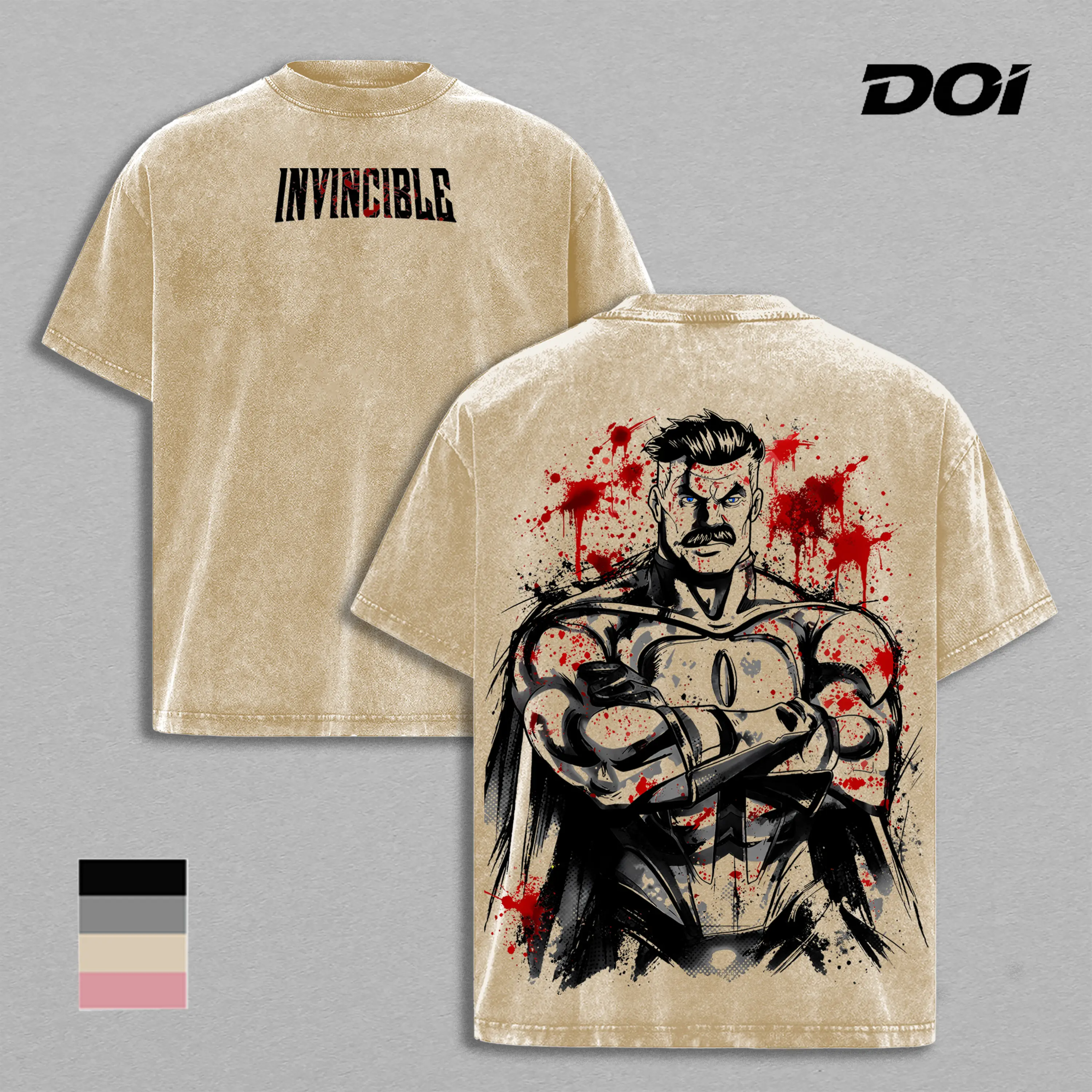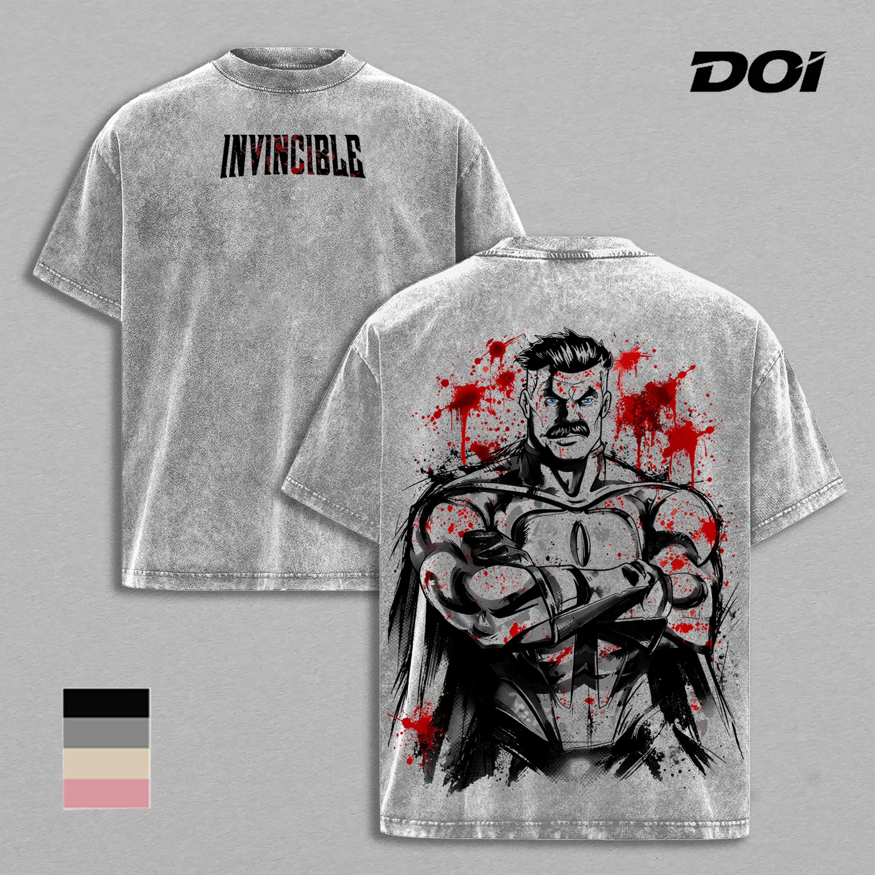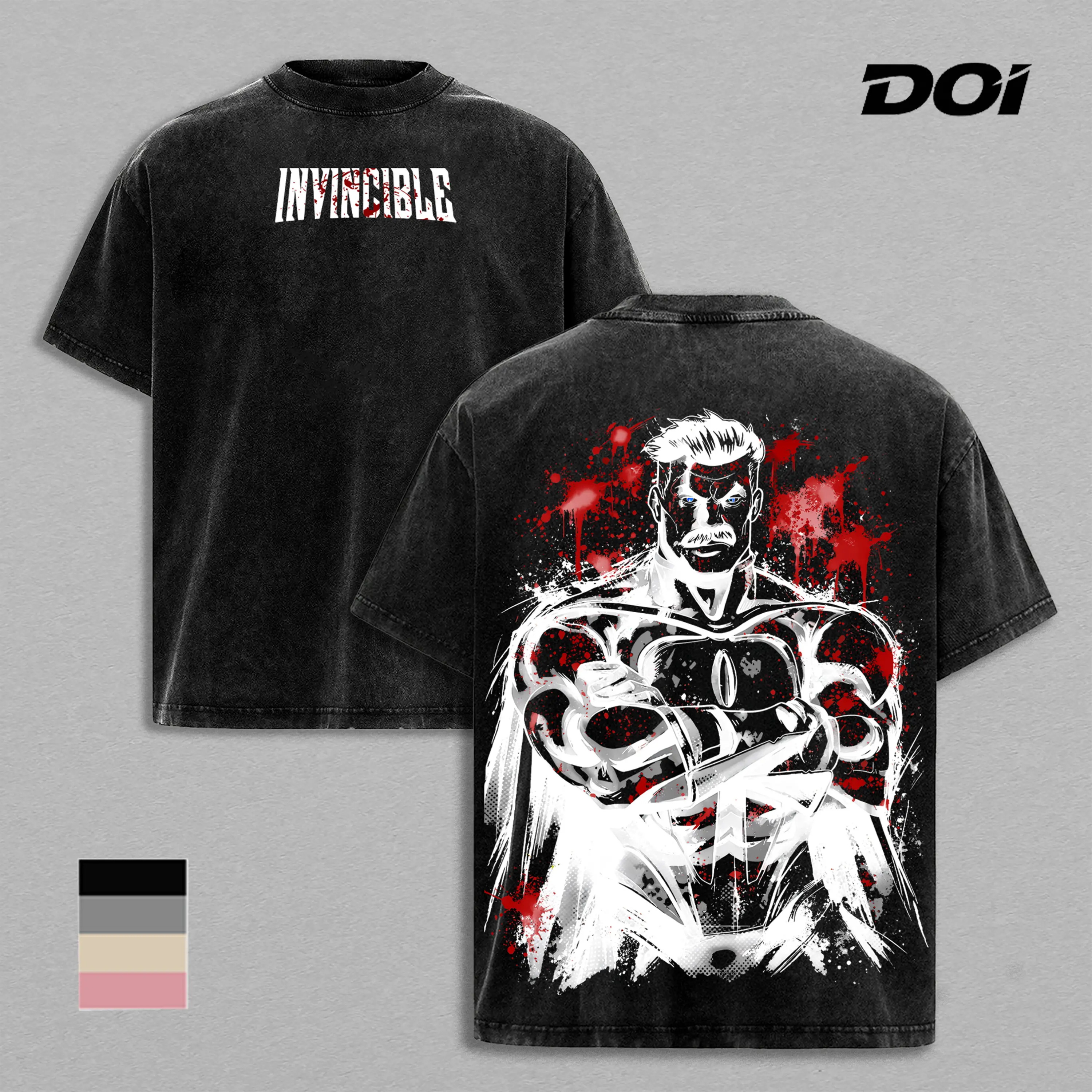 5. Omni-Man – Invincible Blood Splatter Graphic Tee, Vintage Washed Superhero Shirt, Viltrumite Power Minimalist Monochrome Design, Unisex Streetwear Heavyweight Cotton Tee, Gift for Invincible Fans