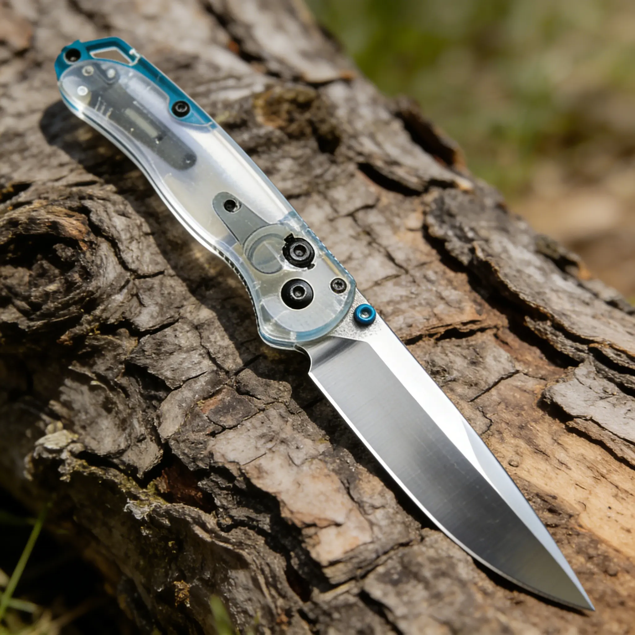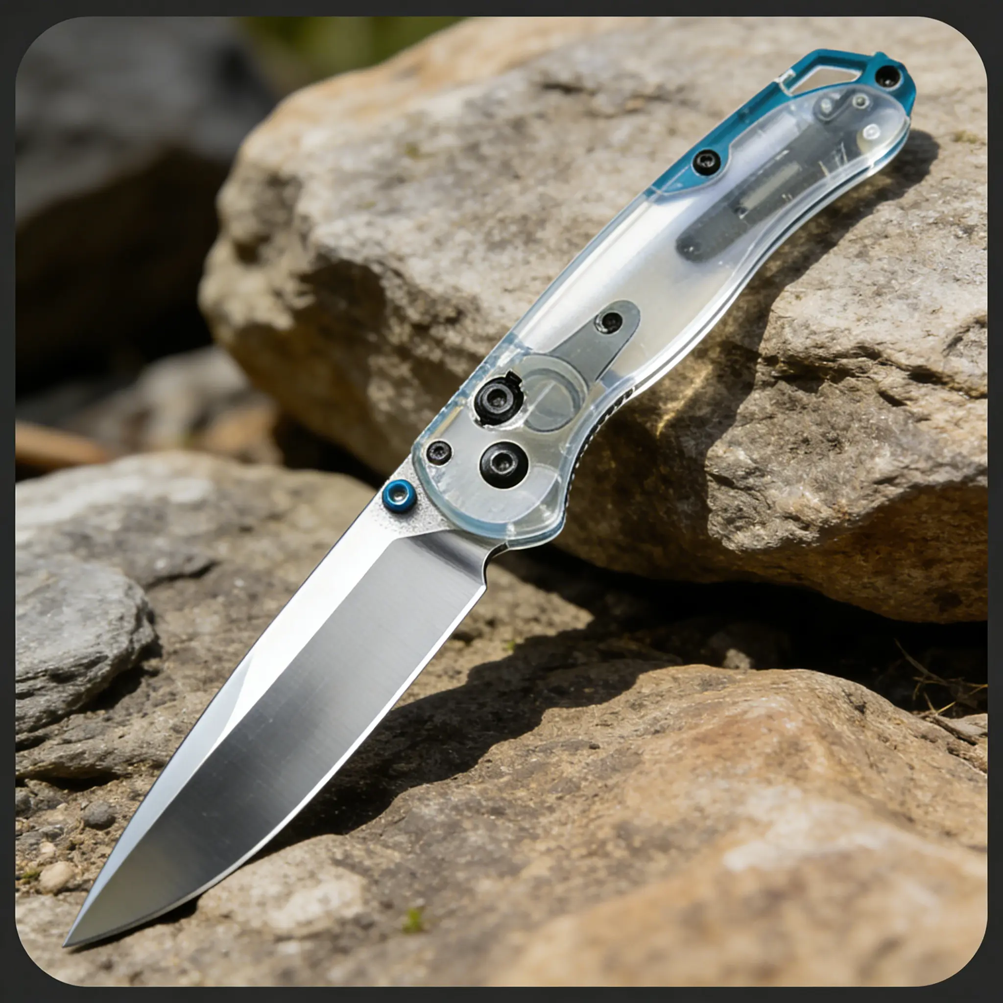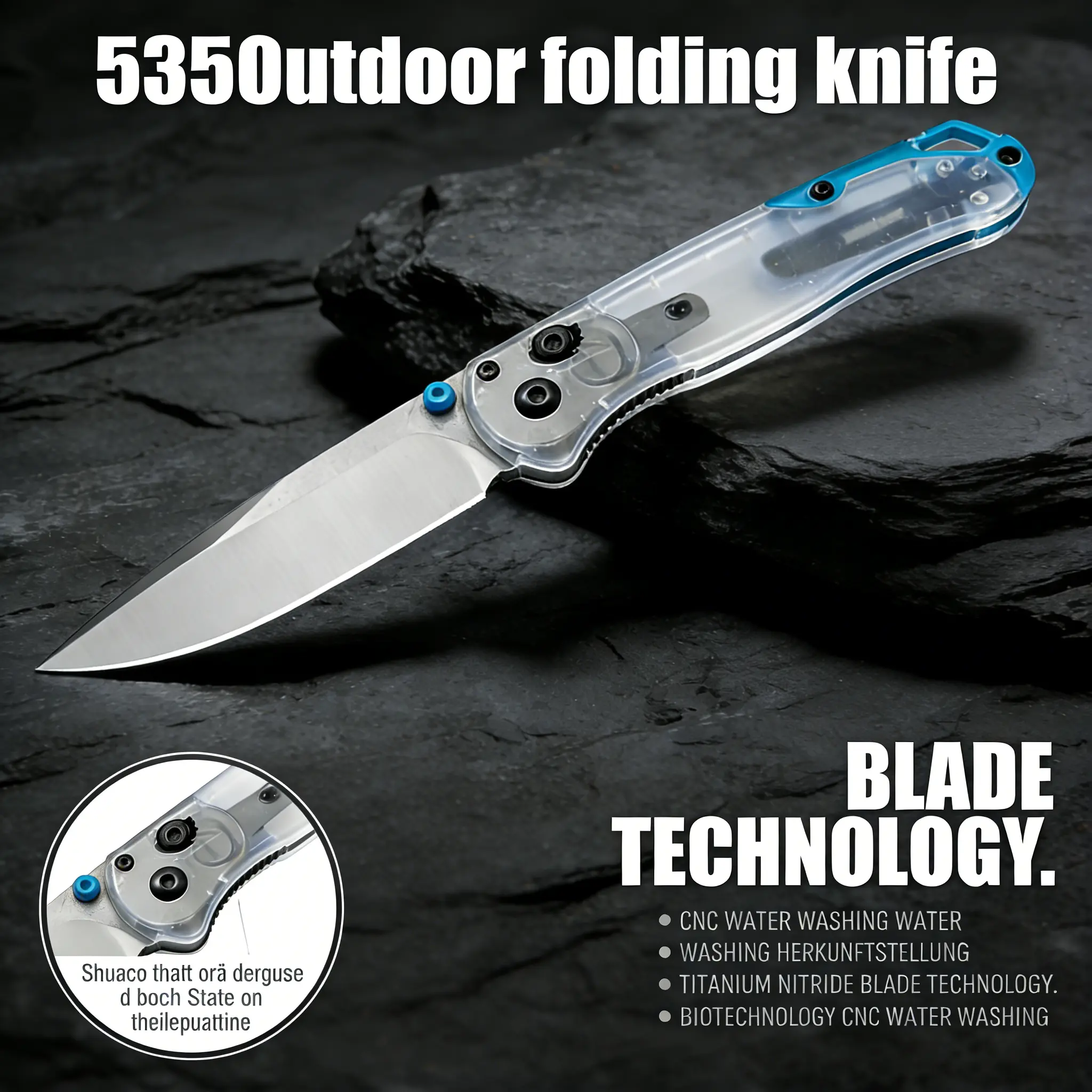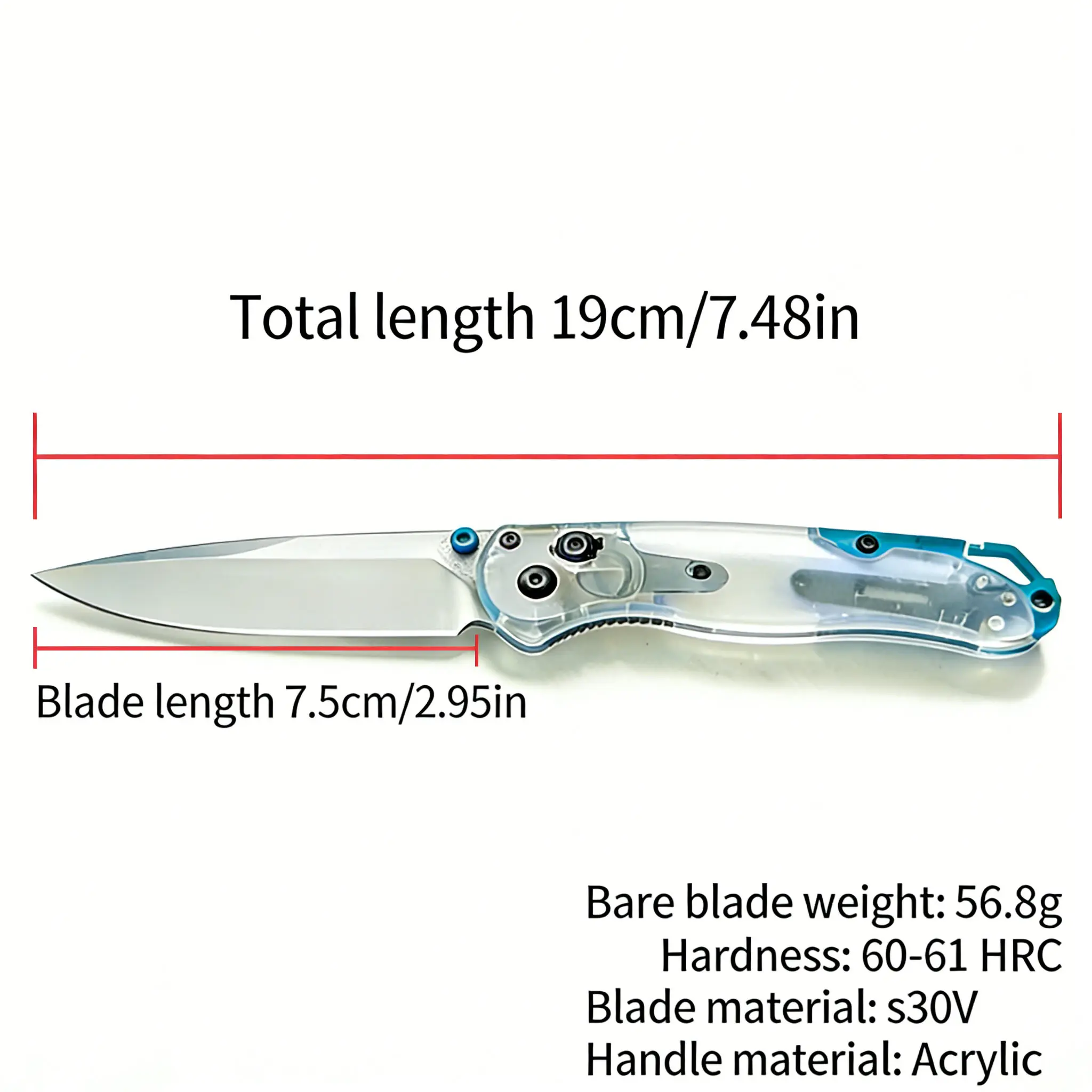 535 Creative Acrylic Clear Handle Folding Knife, Outdoor Emergency EDC Tool, Full Gift Box Set for Gifting & Collection