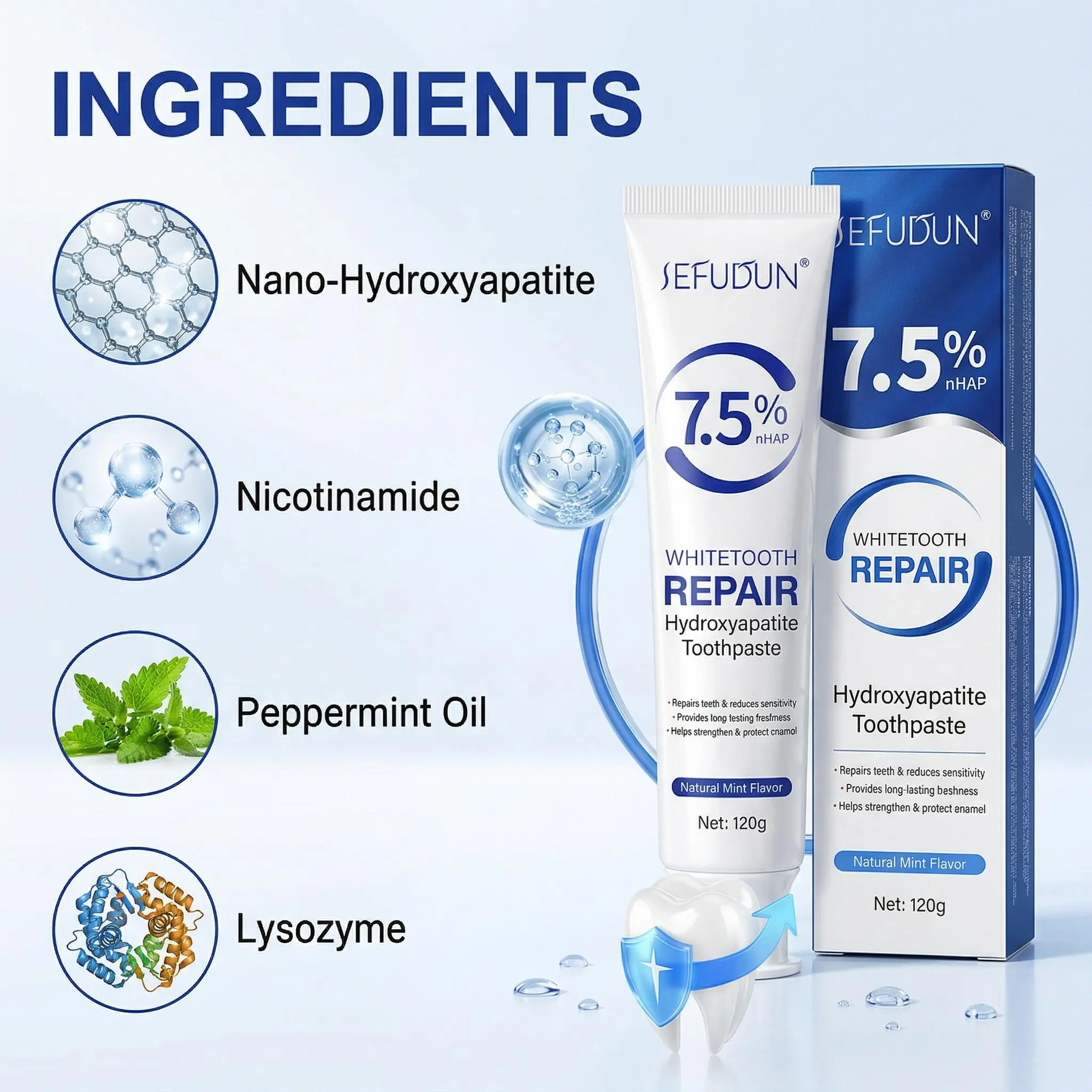 Ideal for sensitive teeth! Gently and effectively cleans teeth with a refreshing mint flavor. The 120g large tube reduces discomfort while keeping breath fresh all day.