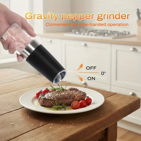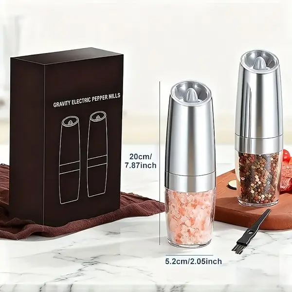 2PCS Electric Salt & Pepper Grinder Set – Gravity Sensor | One-Hand Operation | LED Light