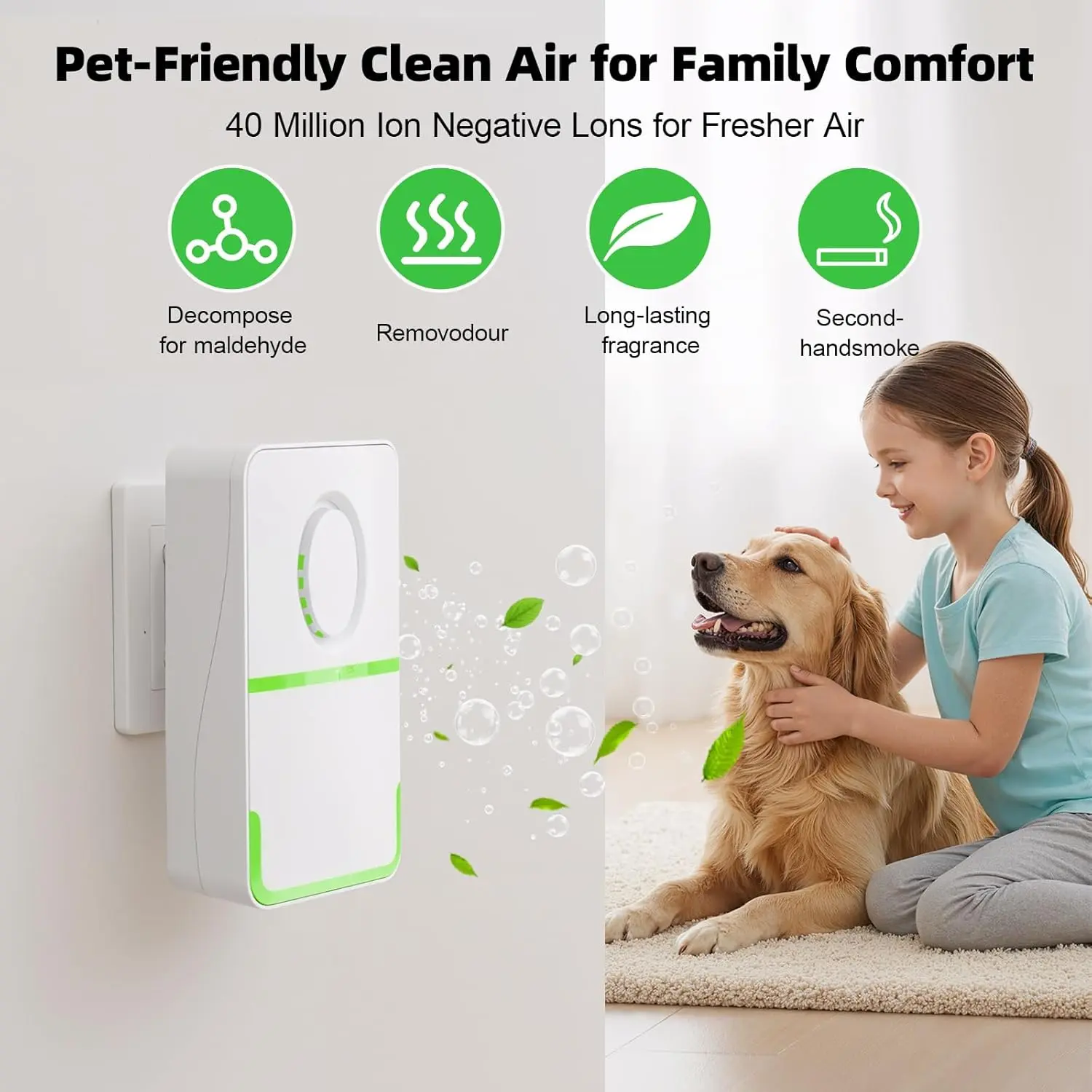 【Advanced Purification: 45 Million Negative Ions】 Breathe easier and more freely with our upgraded plug-in air purifier. Actively releasing over 45 million negative ions per second, it effectively neutralizes airborne pollutants—including stubborn smoke odors, cooking fumes, pet smells, and dust—revitalizing your home environment with fresh, natural air, all without the need for artificial fragrances to merely mask odors.