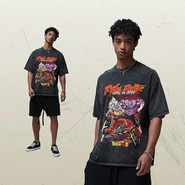 True to size; choose a larger size for an oversized fit. The T-shirts are thick and don't overstretch. Check the size chart for more details