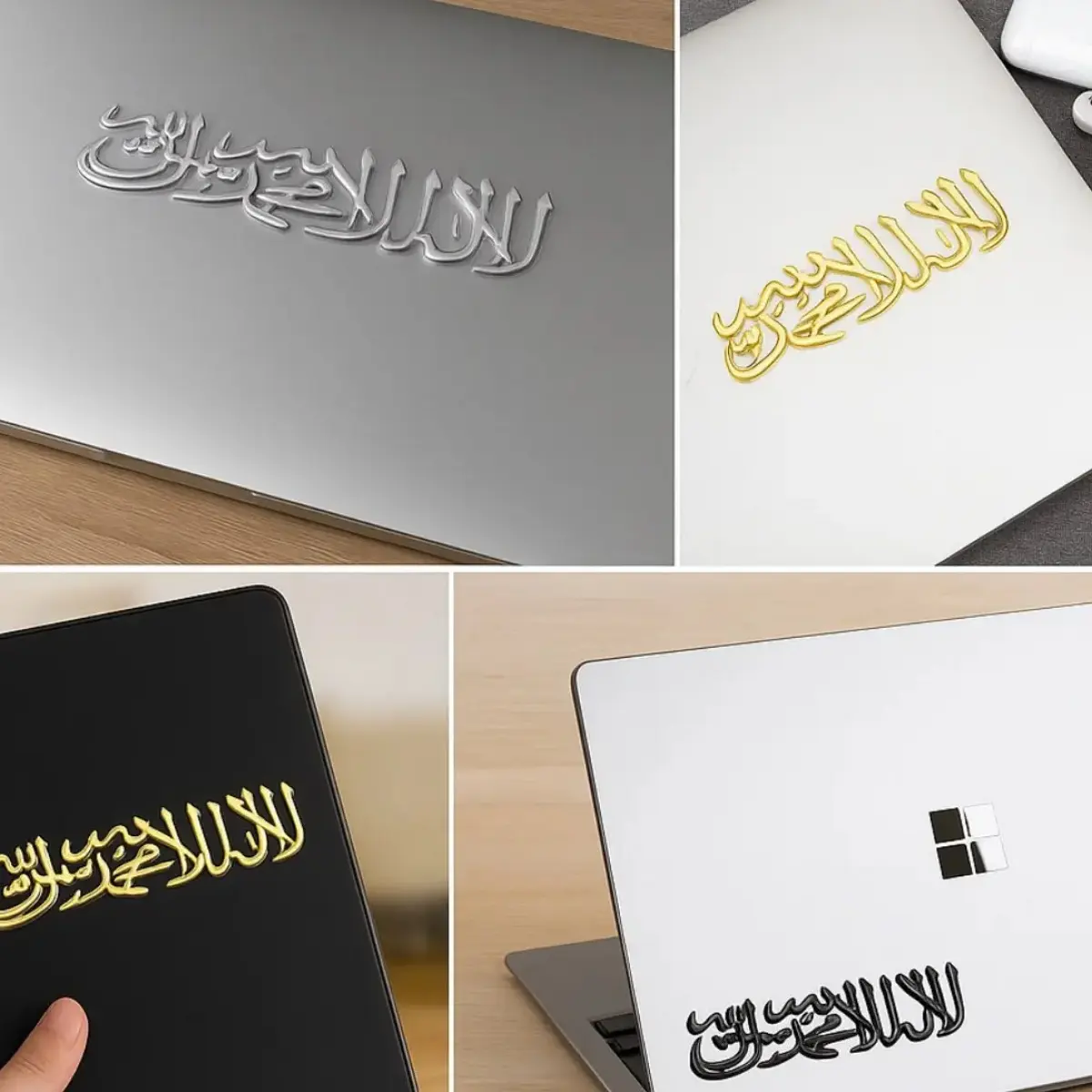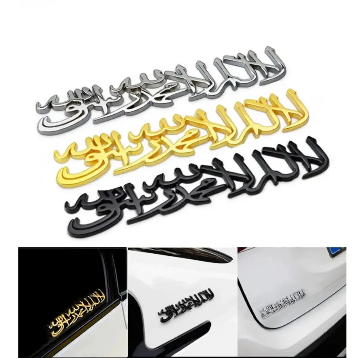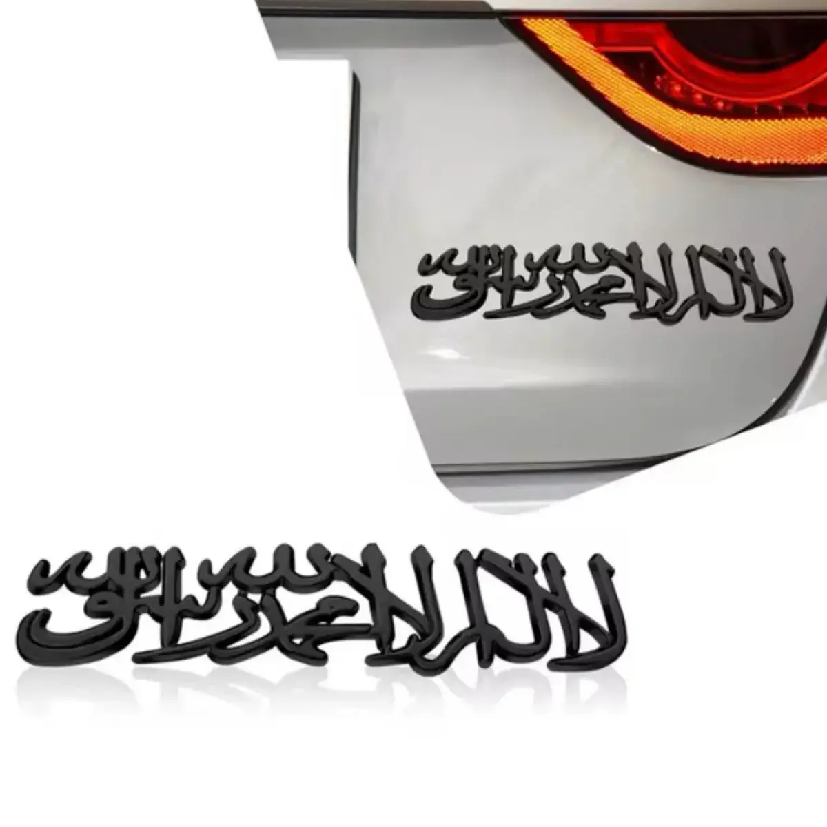 2-PC Halal Arabic Car Badge, Minimalist Stainless Steel Faith Emblem for Muslim Drivers, Islamic Car Accessory with Authentic Calligraphy, No-Drill Adhesive Mount, Universal Fit Auto Decor Gift2PCS