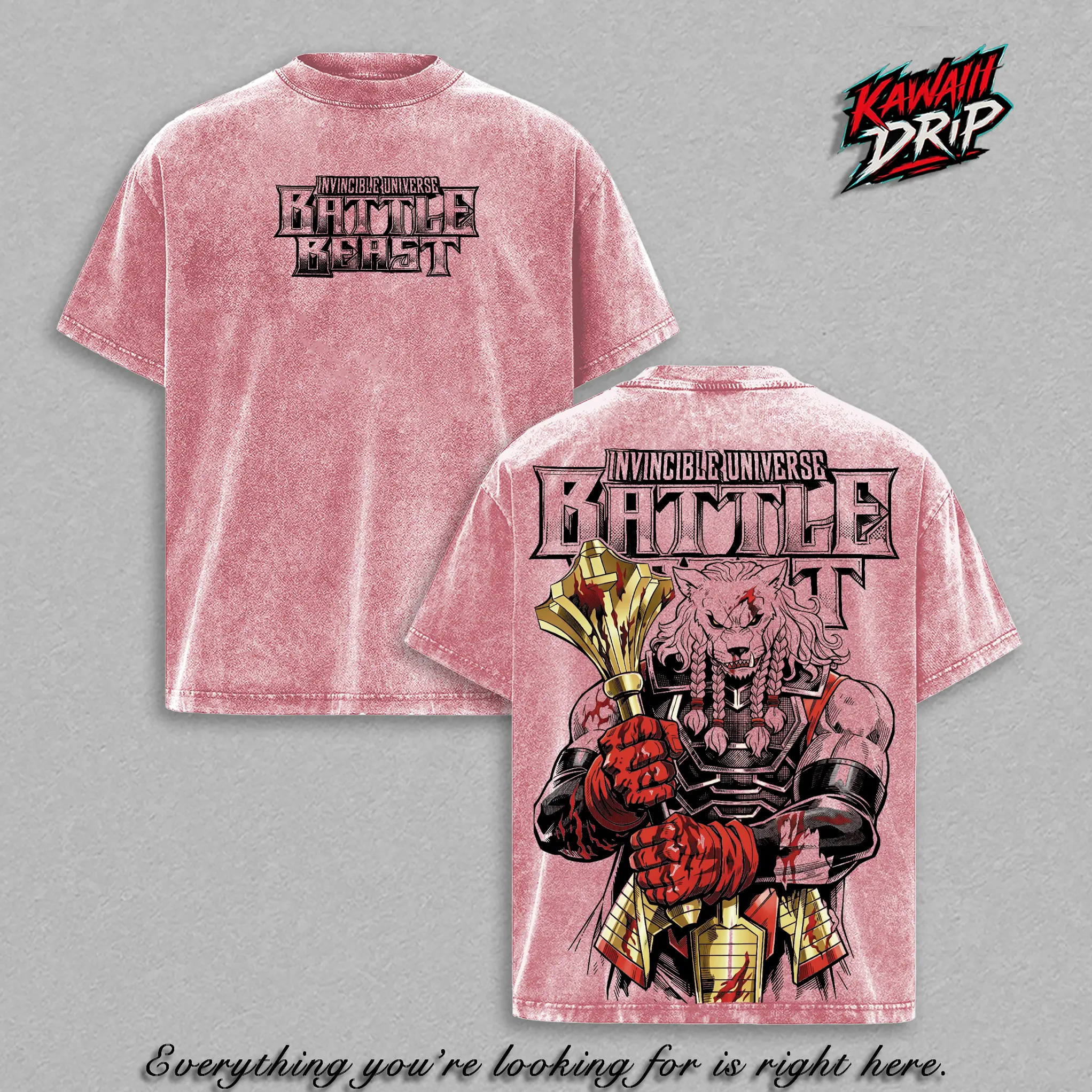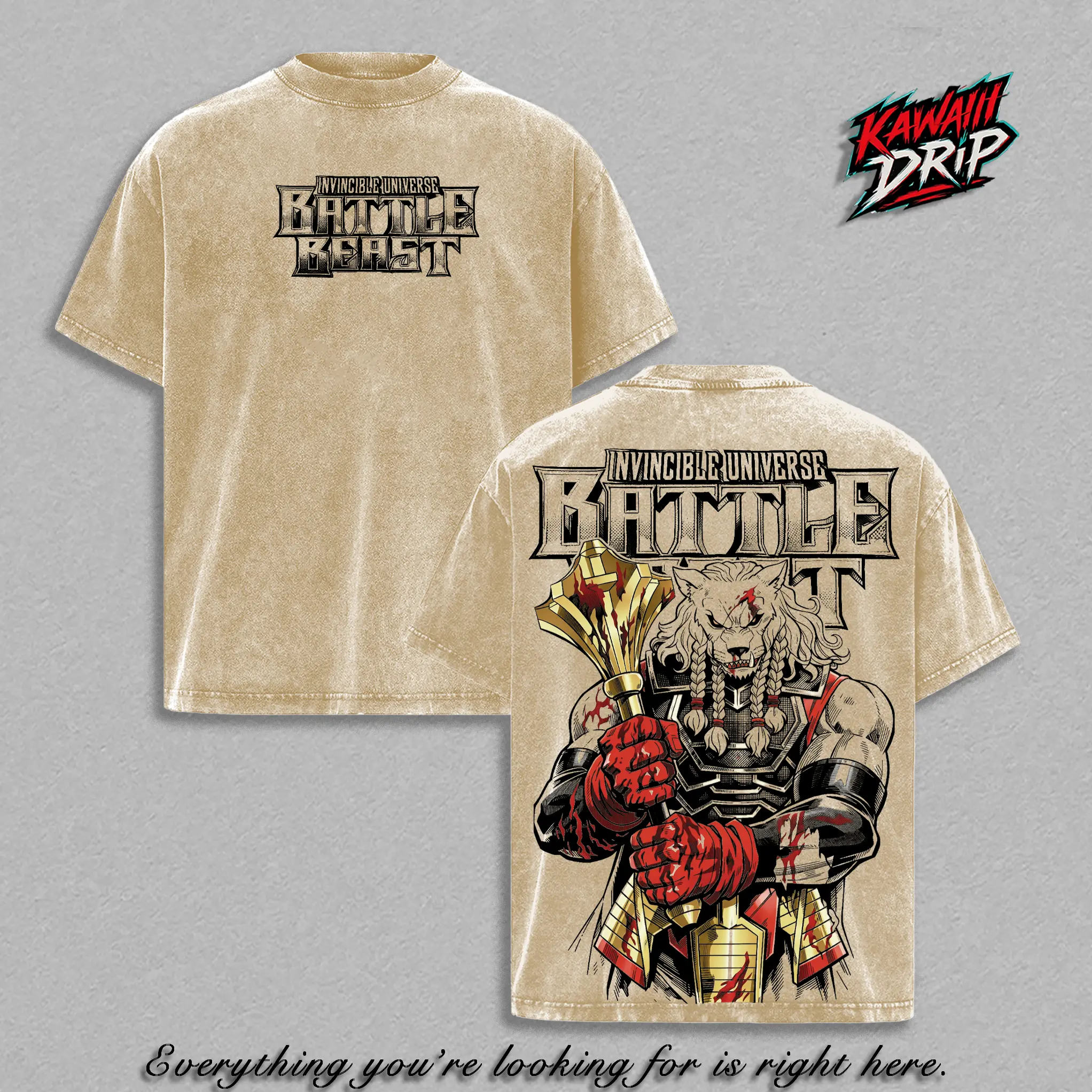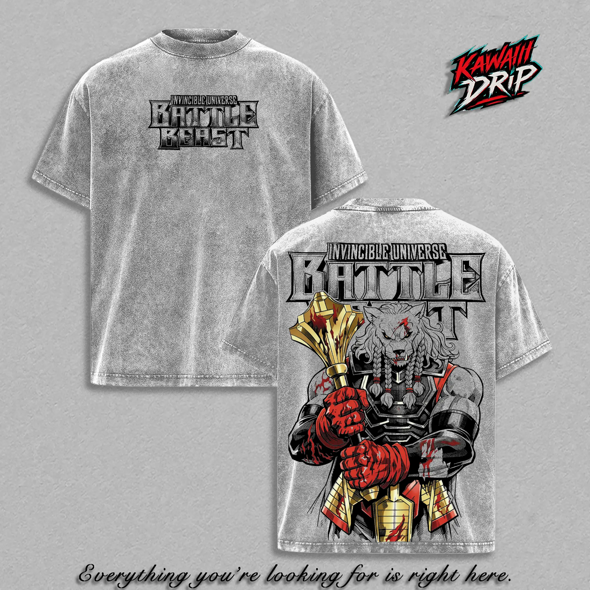 5. Battle Beast - Invincible Universe Graphic Tee | Vintage Clothing Washed Oversized Heavyweight T-Shirt | Anime Comic Streetwear Top Shirt | Large Back Print Graphic Tee | Heavy Cotton Unisex | Gym Pump Cover Gamer Outfit | Gift For Invincible Fans