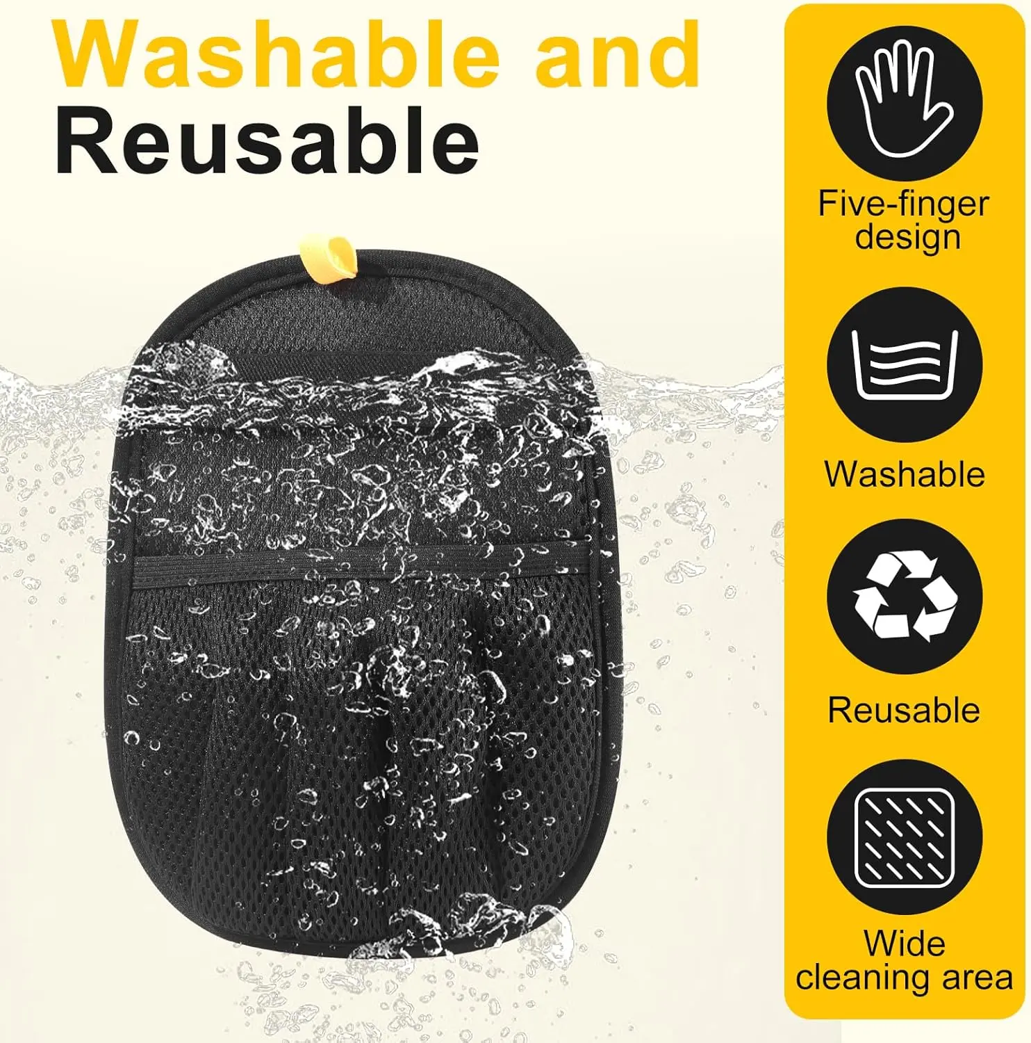 ·Effortless Pet Hair Removal – Five-finger electrostatic glove lifts dog & cat hair from couches, carpets, car seats with simple left-to-right strokes—no sticky refills needed.
