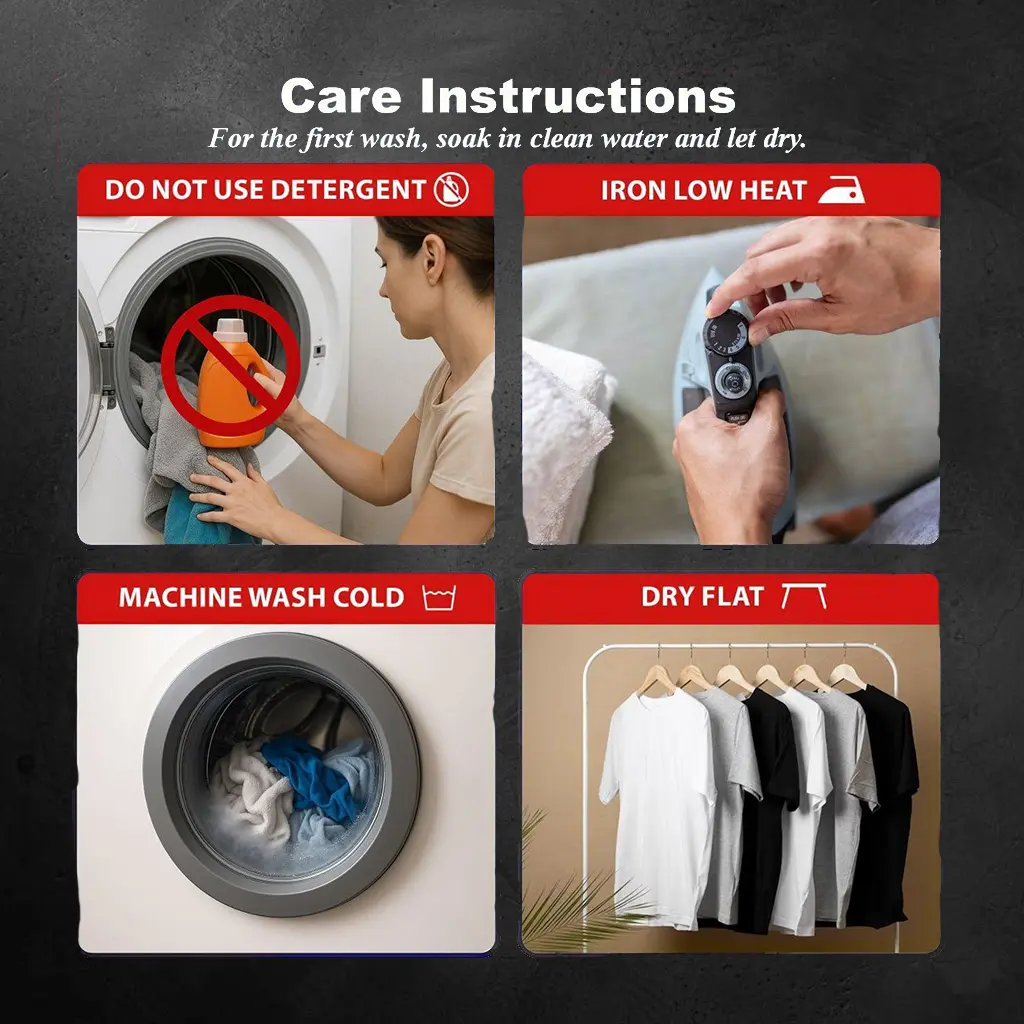 ·Avoid bleach and iron gently on printed areas.
