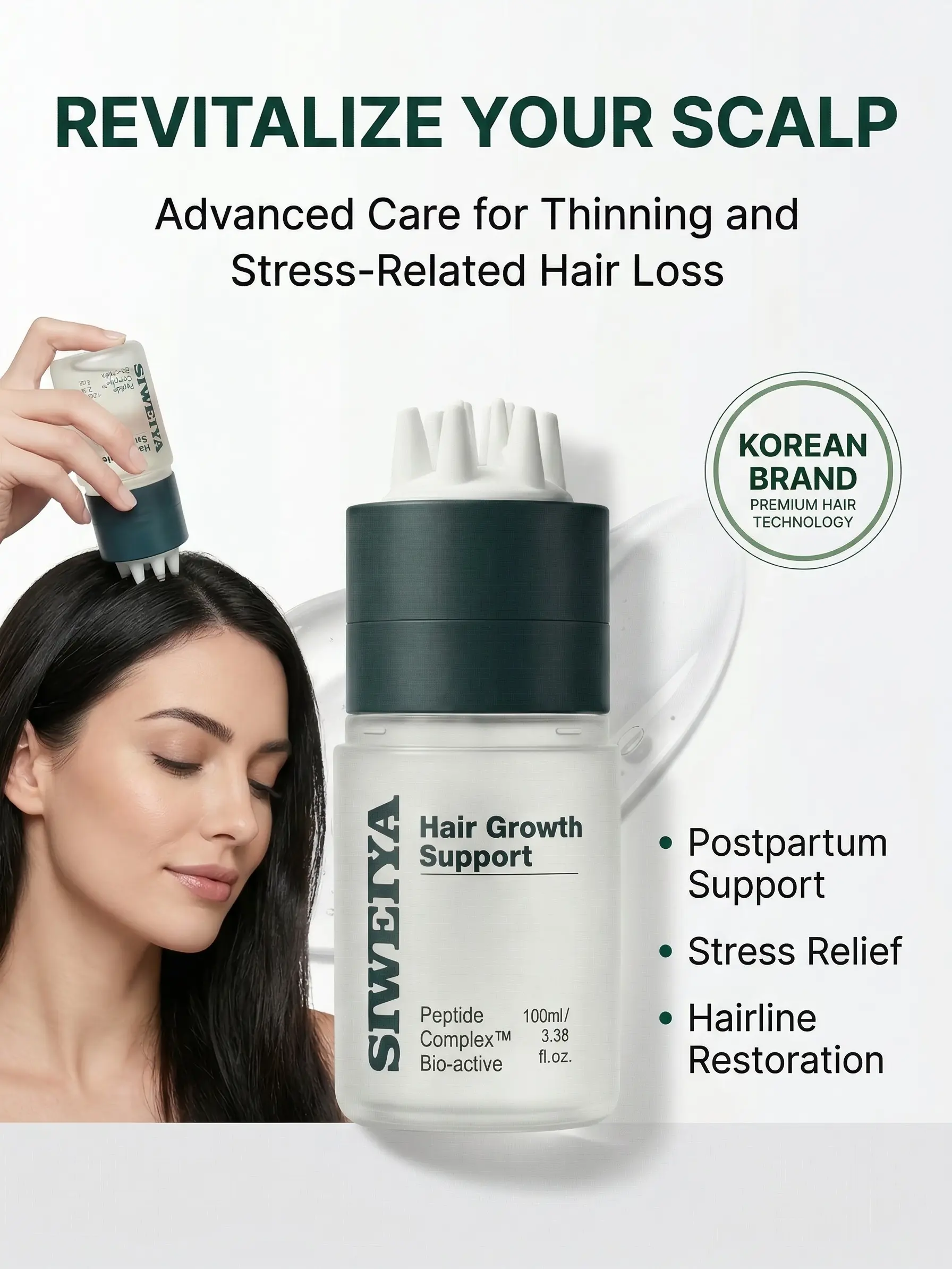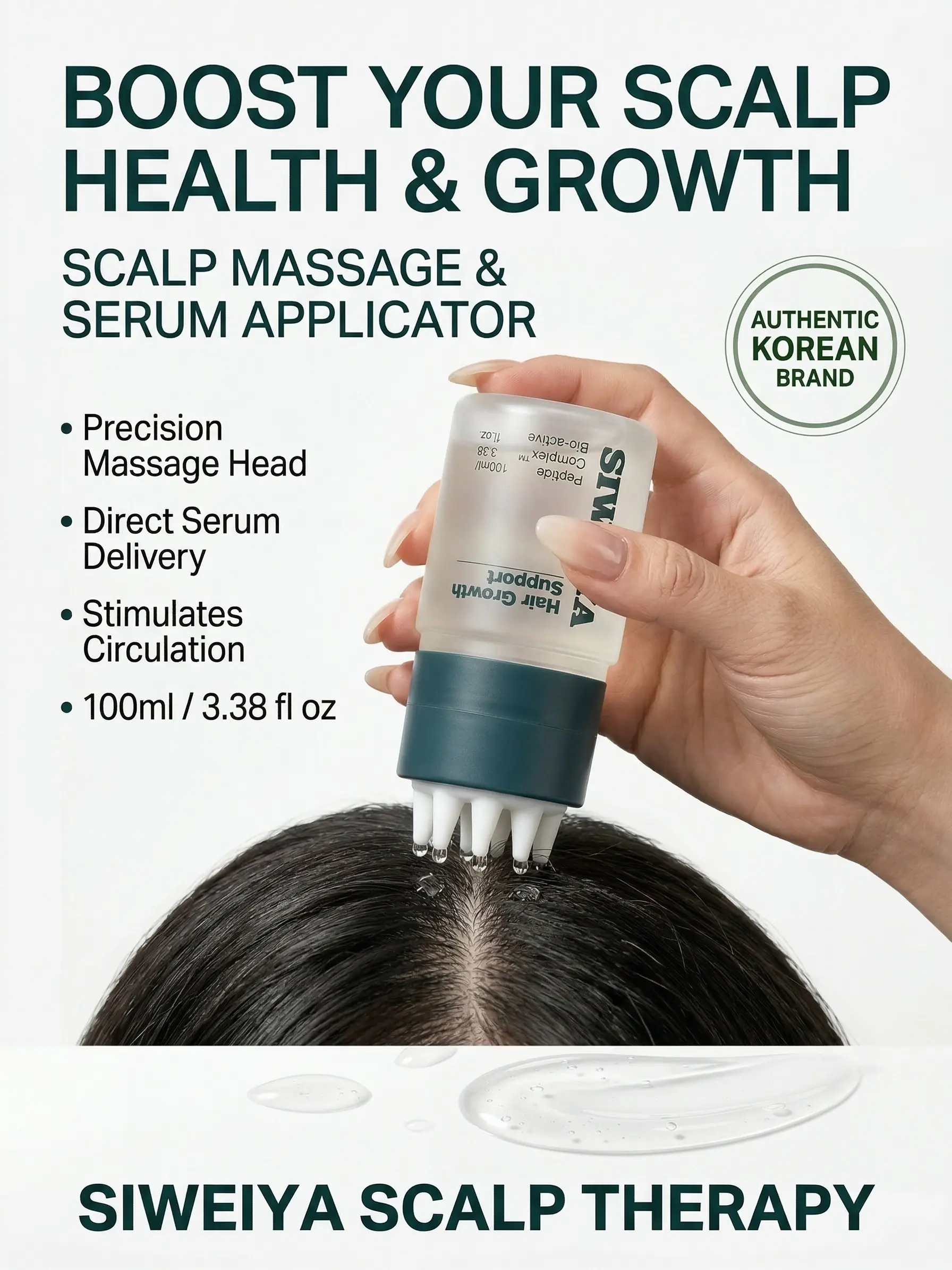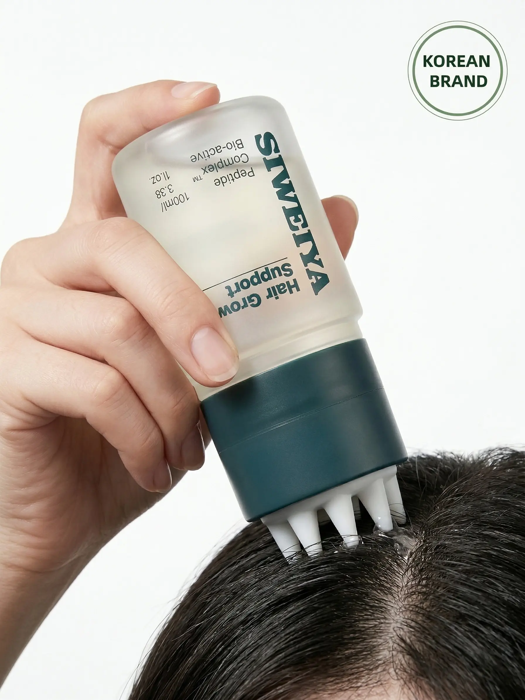 Korean Hair Growth Serum with Built-in Scalp Massager, Peptide Complex Formula for Thinning Hair & Hair Loss Concern, Strengthens Hair Roots, Soothes & Nourishes Scalp, Plant-Based Bio-Active Scalp Care for Fuller-Looking Strands, 100ml