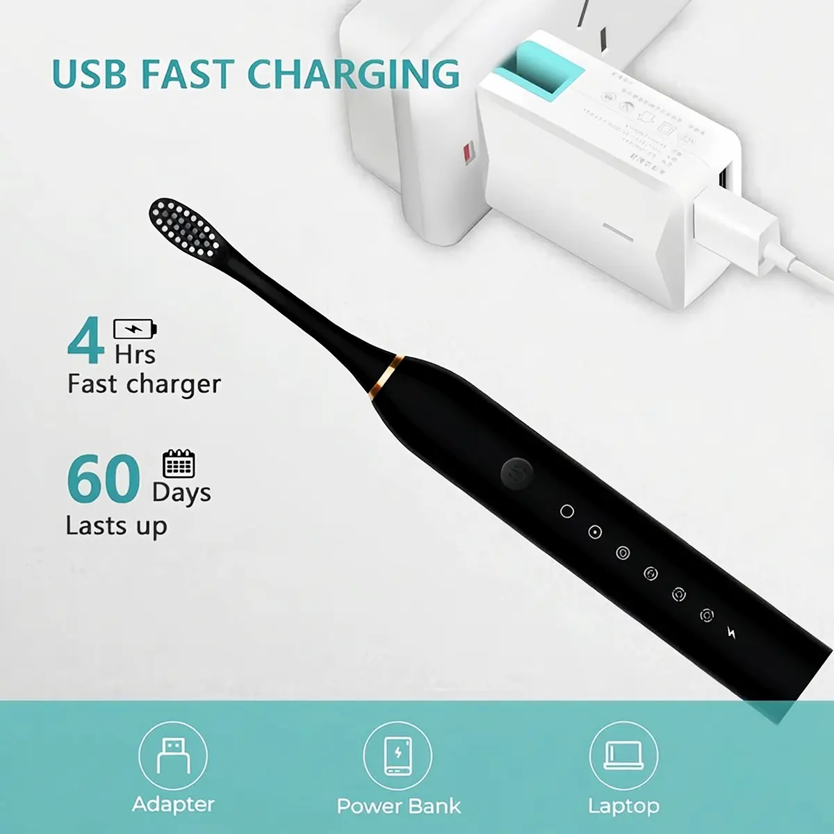 ·【Convenient Charging】Designed with convenience in mind, this toothbrush is USB rechargeable, eliminating the need for constantly buying batteries. Its fast charge technology allows you to quickly power up your toothbrush, ensuring it's always ready to use. The IPX7 waterproof rating means you can confidently use this toothbrush in the shower or bath without worrying about water damage.