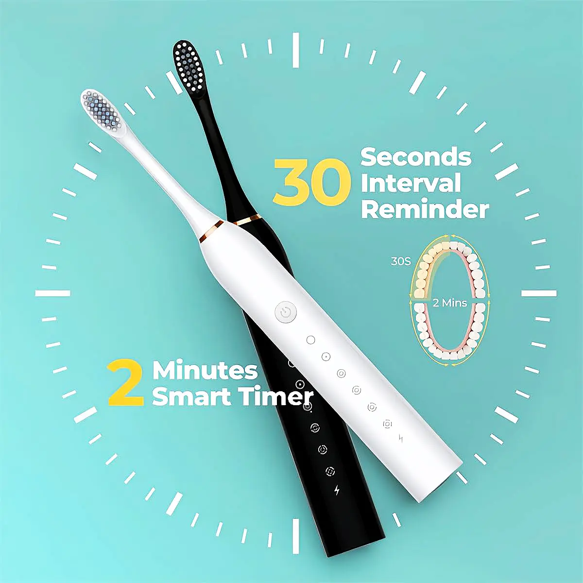 ·【Customizable Modes】Choose from 6 cleaning modes (Sensitive, Gentle, Clean, Massage, Gum Protection, Whitening) to meet your specific oral care needs. The smart timer feature ensures that you brush for the dentist-recommended 2 minutes, evenly dividing the time between all four quadrants of your mouth.