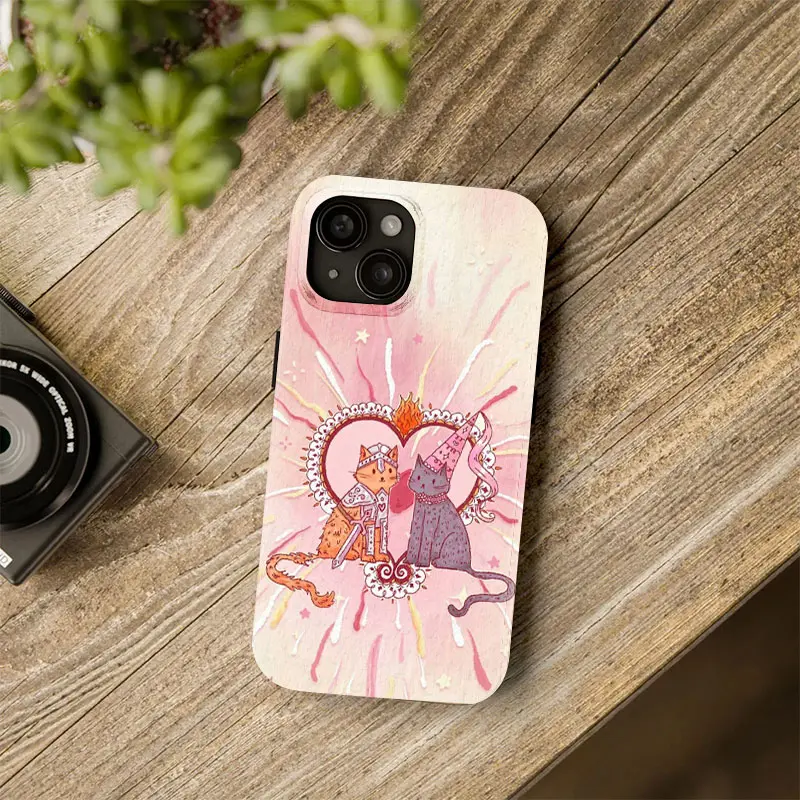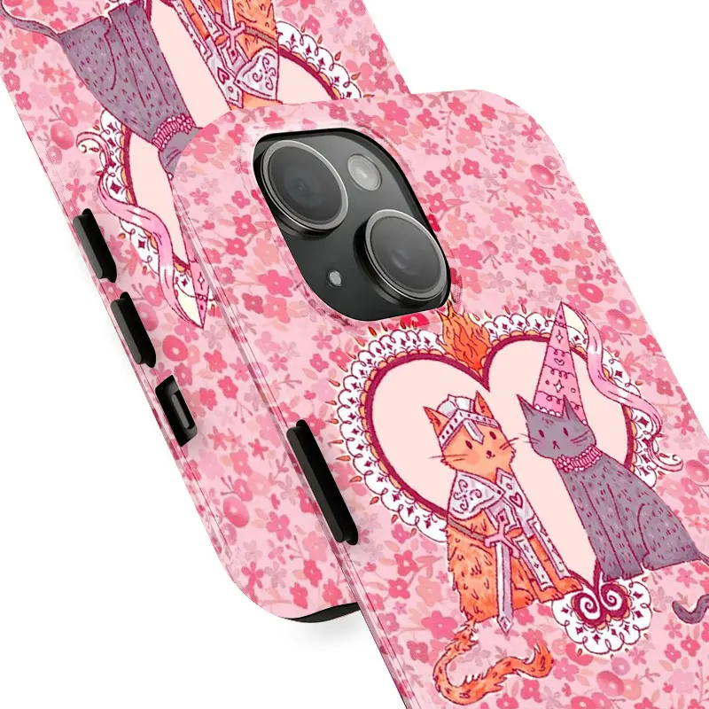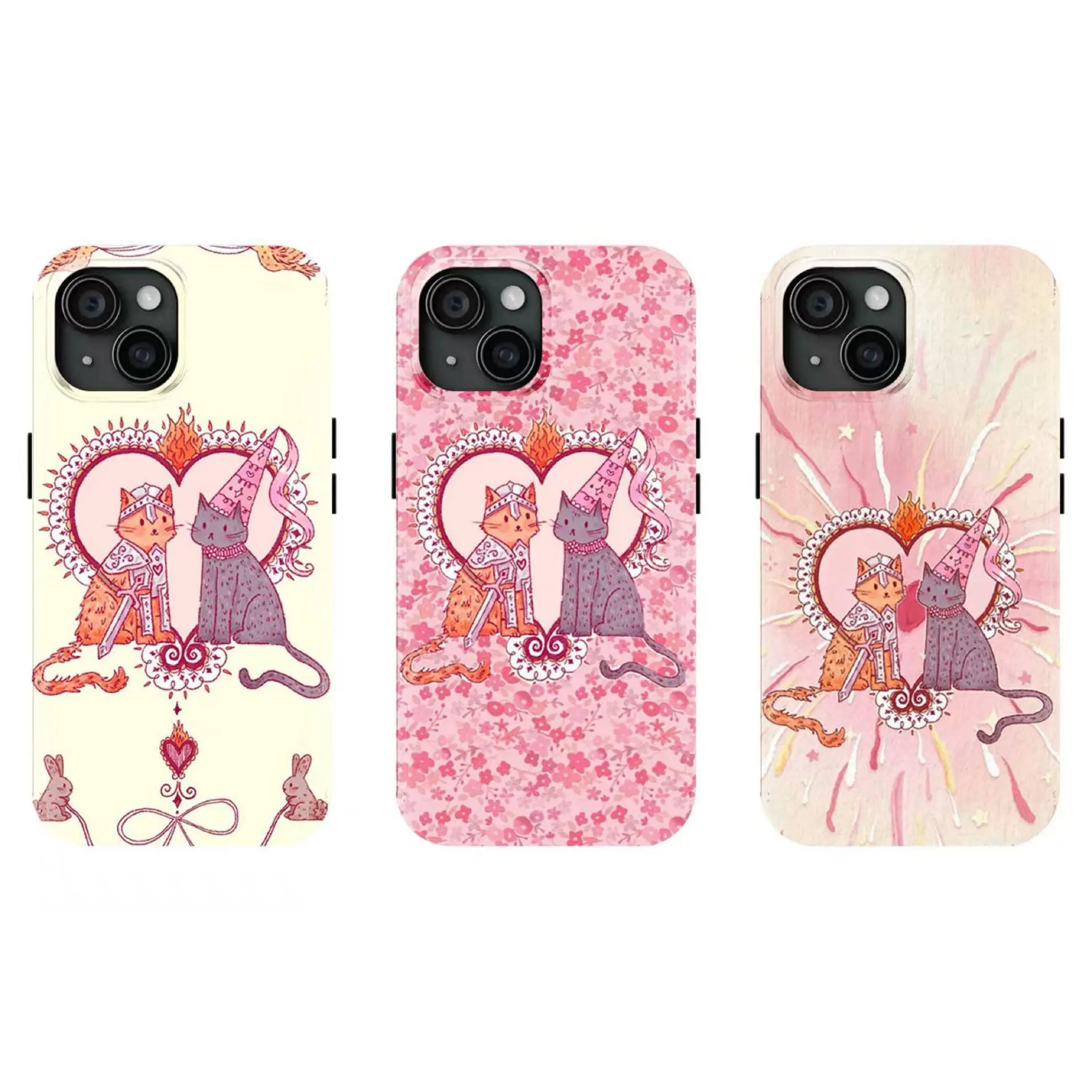 Retro Cat Design Phone Case | Adorable Heart-Shaped Cat Pattern Protective Case, Compatible with iPhone 17/16/15/14/13/12/11 Pro Max/Plus and Samsung Galaxy S23FE/22/23/24/25, Perfect Gift for Friends