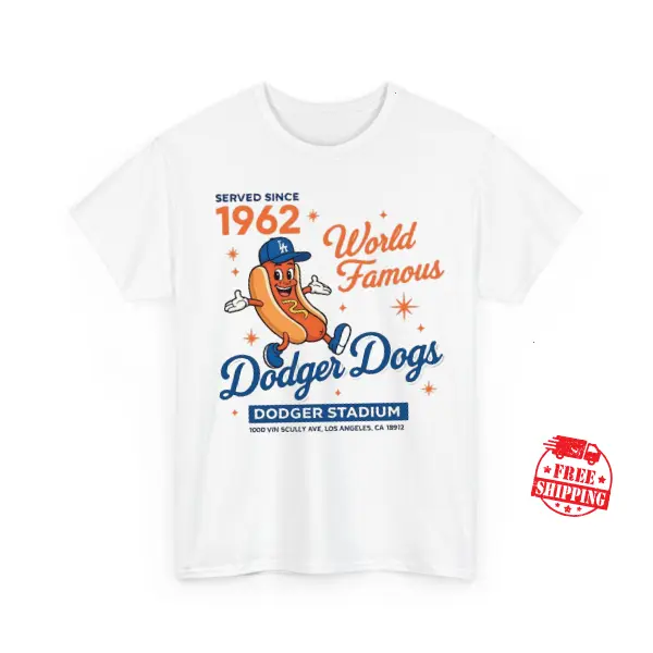 [Sale up to 50%] [Free Ship] Dodger Dogs World Famous 1962 Stadium Tee, Retro Ballpark Hot Dog Shirt