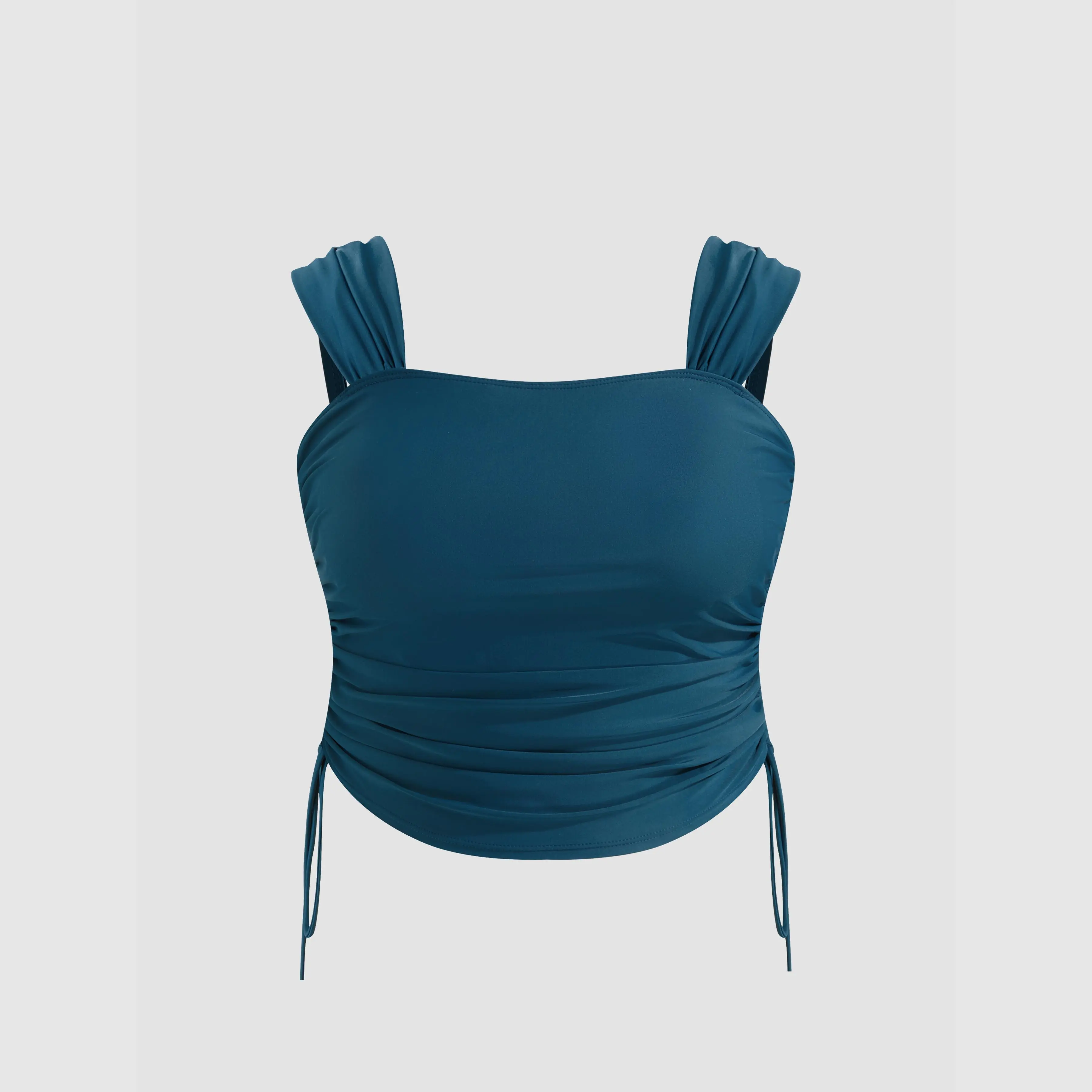 5. Cider Shaping Square Neck Solid Drawstring Bracelet Cheeky Tankini Swimsuit Curve & Plus
