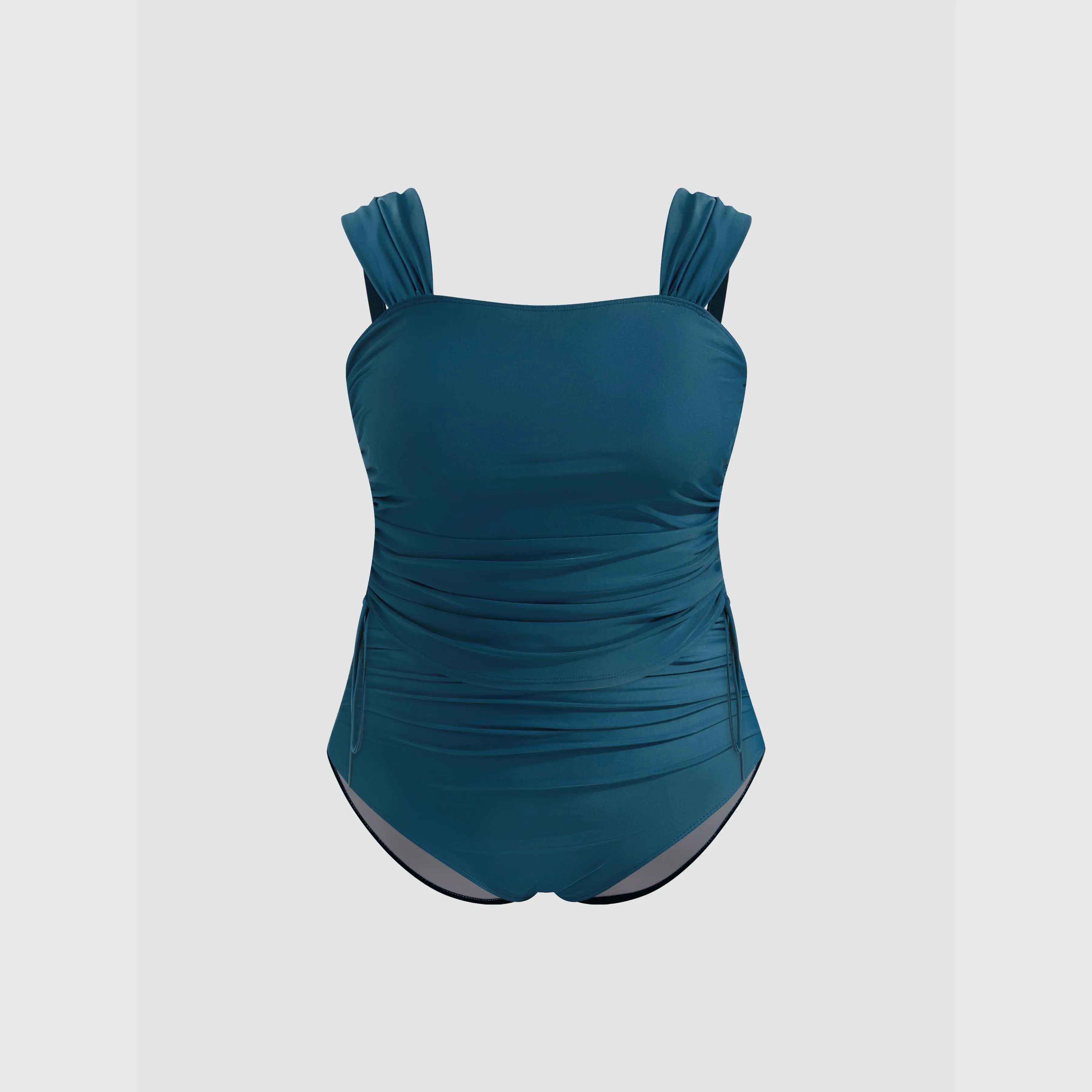 Cider Shaping Square Neck Solid Drawstring Bracelet Cheeky Tankini Swimsuit Curve & Plus