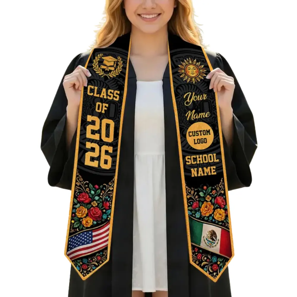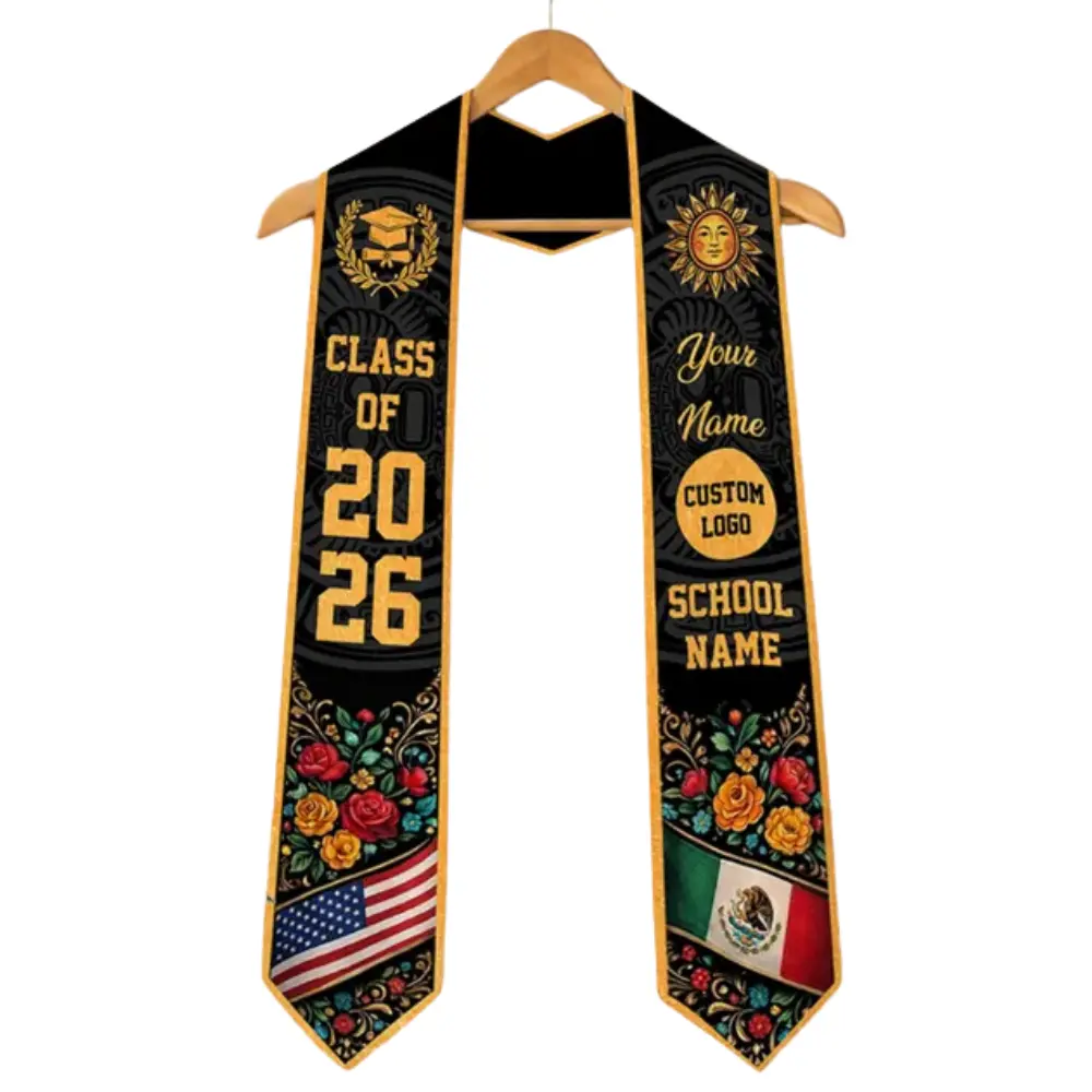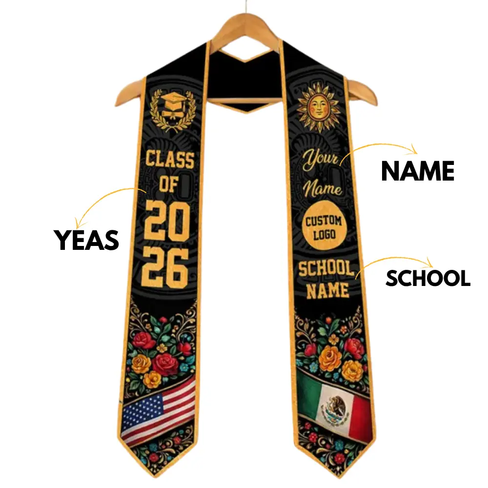 5. [HOT] Mexican Graduation Stole Class of 2026 Printed Sash, Custom Name School Stole, Mexico Flag Graduation Gift