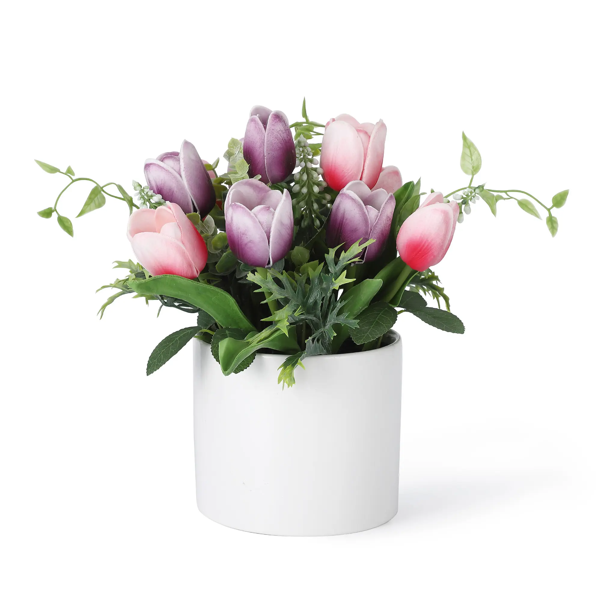 Lifelike Real Touch Artificial Tulips in Ceramic Pot