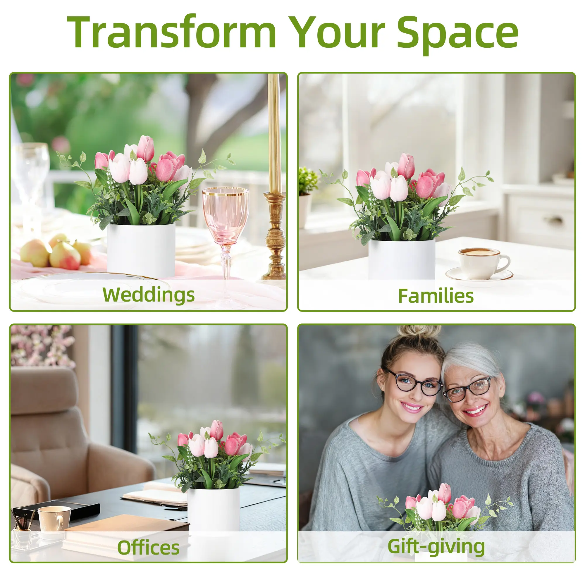 This set of faux tulips is incredibly versatile. Use them as a charming centerpiece, cheerful fake flower arrangements for your dining table, or delightful accents for weddings and events. Also known as flores artificiales, they make an unforgettable gift for Mother's Day, Easter, Valentine’s Day, or housewarmings.
