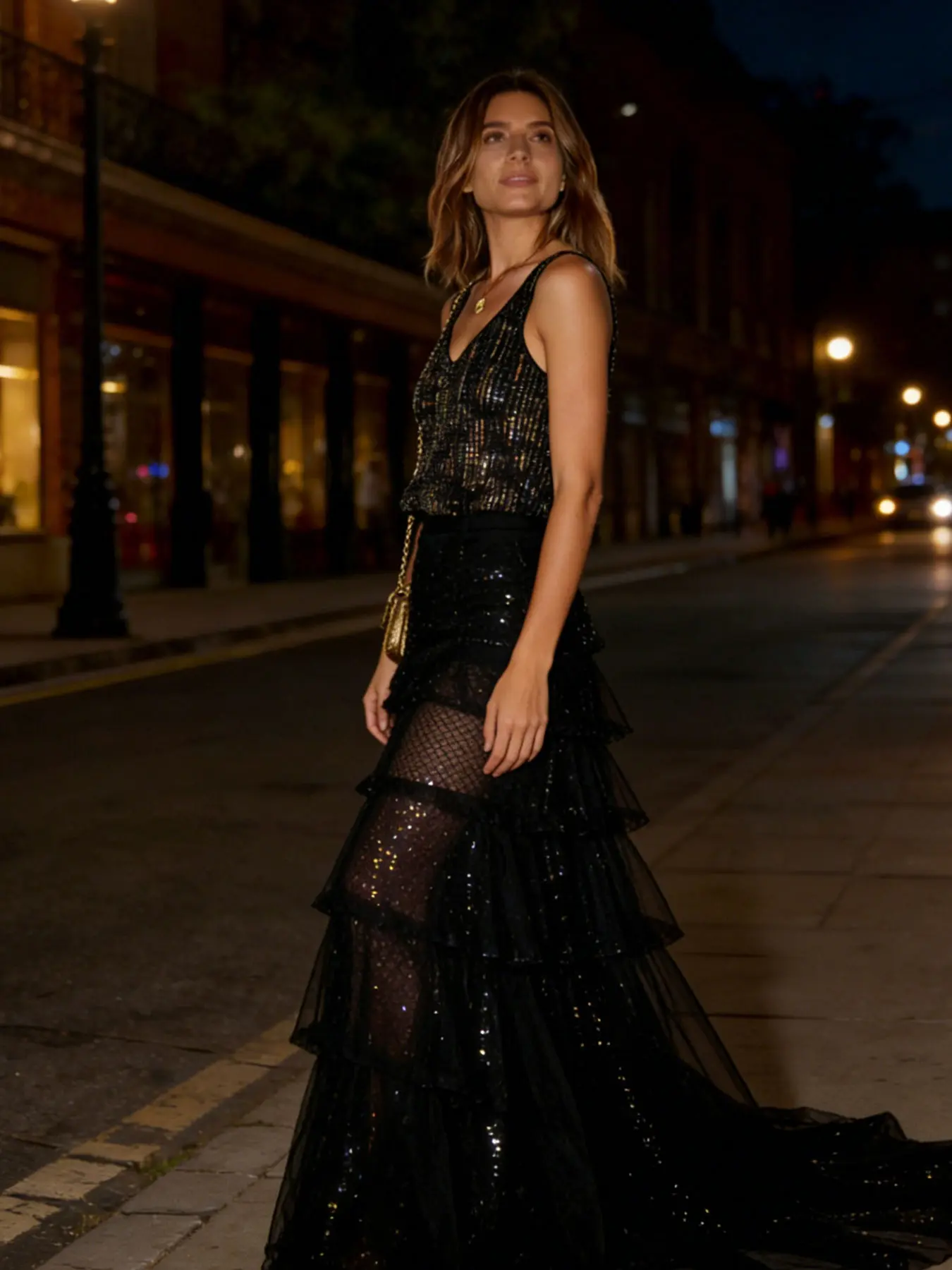 One-Piece Women's Sequin Tank Top, V-Neck Sleeveless Sparkly Blouse, Suitable for Home, Indoor and Outdoor Wear
