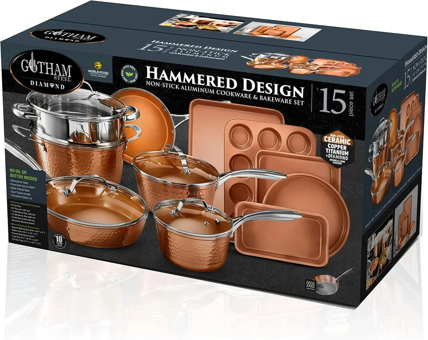 Gotham Steel TRUE VALUE 20 Pc Ceramic Pots and Pans Set Non Stick, Ceramic Cookware Set with Bakeware, Pot and Pan Set with Utensils, Non Stick Pots and Pan Set, Oven & Dishwasher Safe, Copper