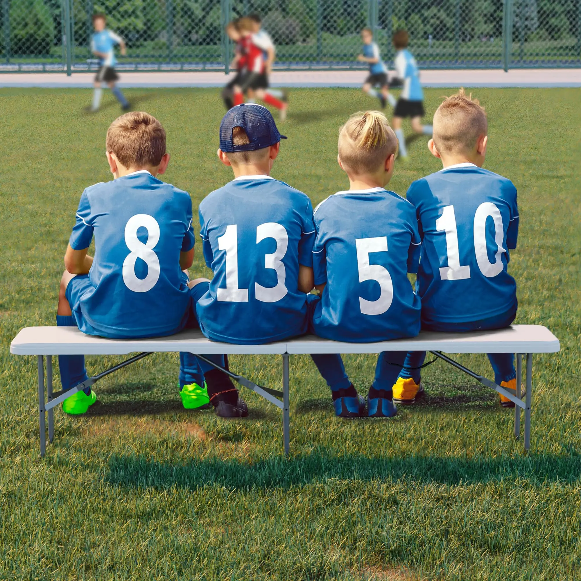 ·2.【Strong & Stable Design】- Features thicker metal frame with anti-slip feet and a locking mechanism to prevent wobbling or accidental collapse. Ideal as a sports bench, team bench, or lifetime bench.