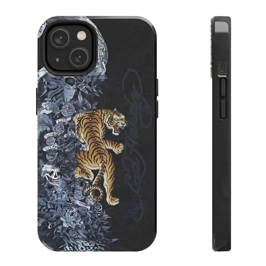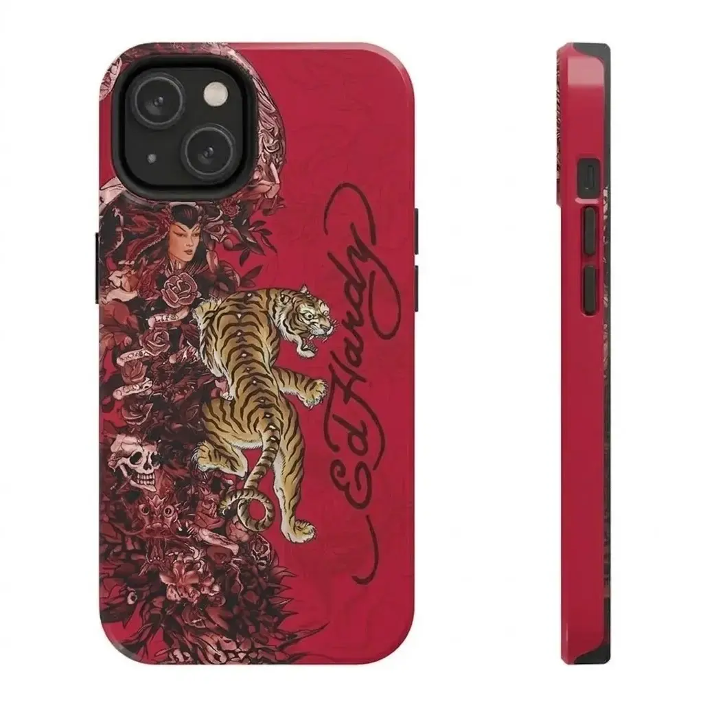 Pink Ed Hardy Skull Leopard Tattoo iPhone Case Aesthetic Y2k Trendy Tiger Ed Hardy Collage Phone Case for iPhone, Samsung phones, suitable for both men and women, Perfect Gift for Women Men.A gift for the fans