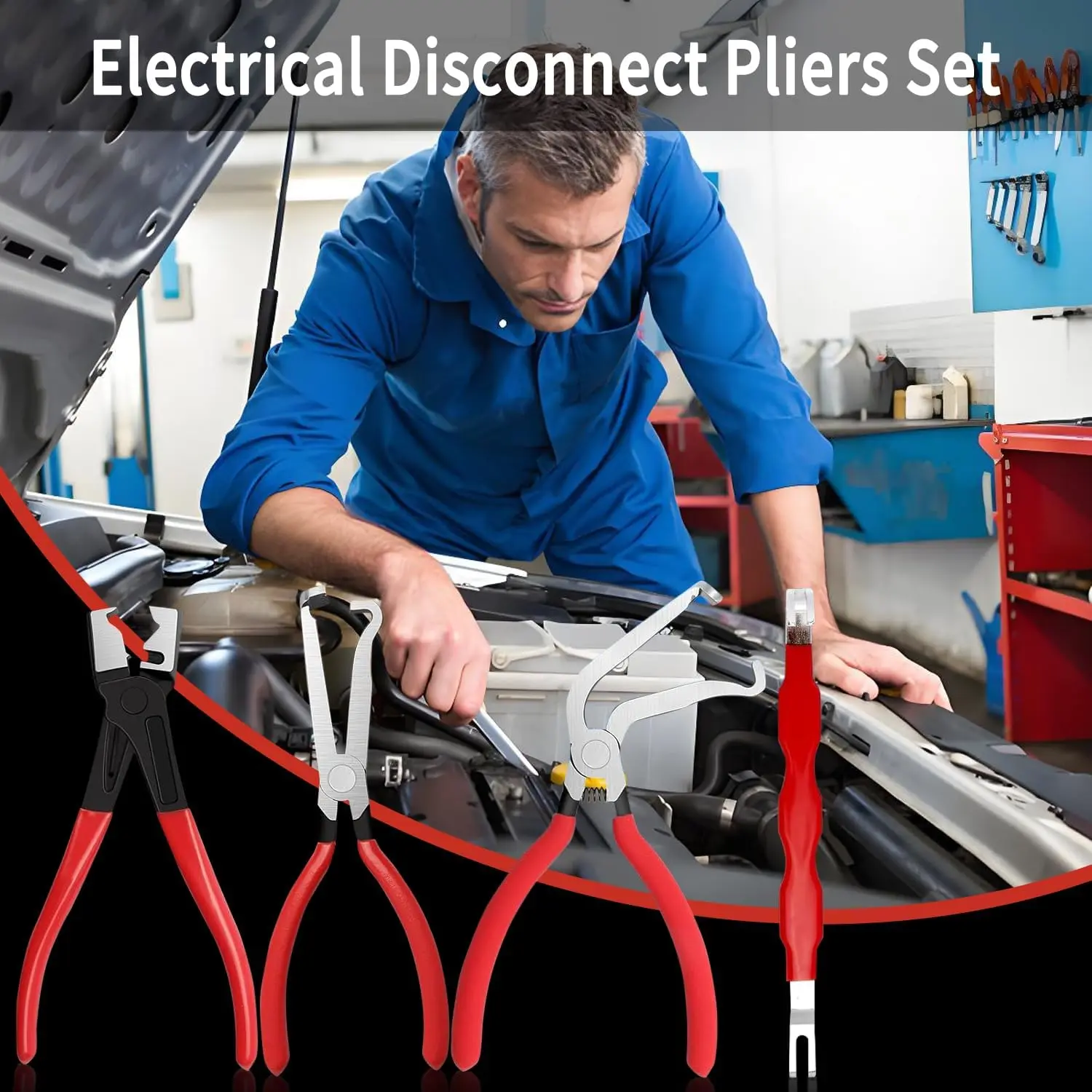 This 4 piece automotive electrical disconnect pliers kit is crafted from premium high-carbon steel, ensuring durability and corrosion resistance. The oxidized surface protects against rust, while ergonomic plastic-coated grips provide a secure, non-slip hold even in oily or wet conditions.