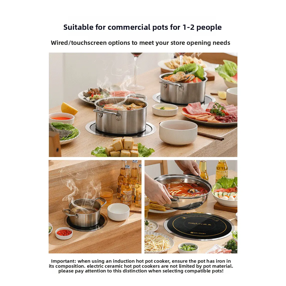 This embedded mini induction cooker is perfectly designed for single-person shabu hot pot, compact and space-saving for restaurant booths and home small dining tables all the time.