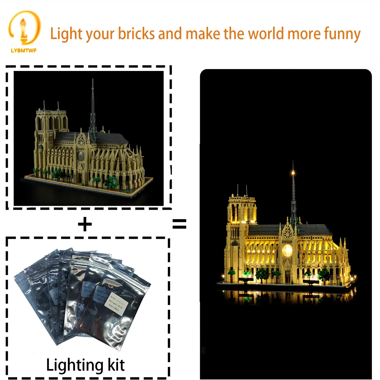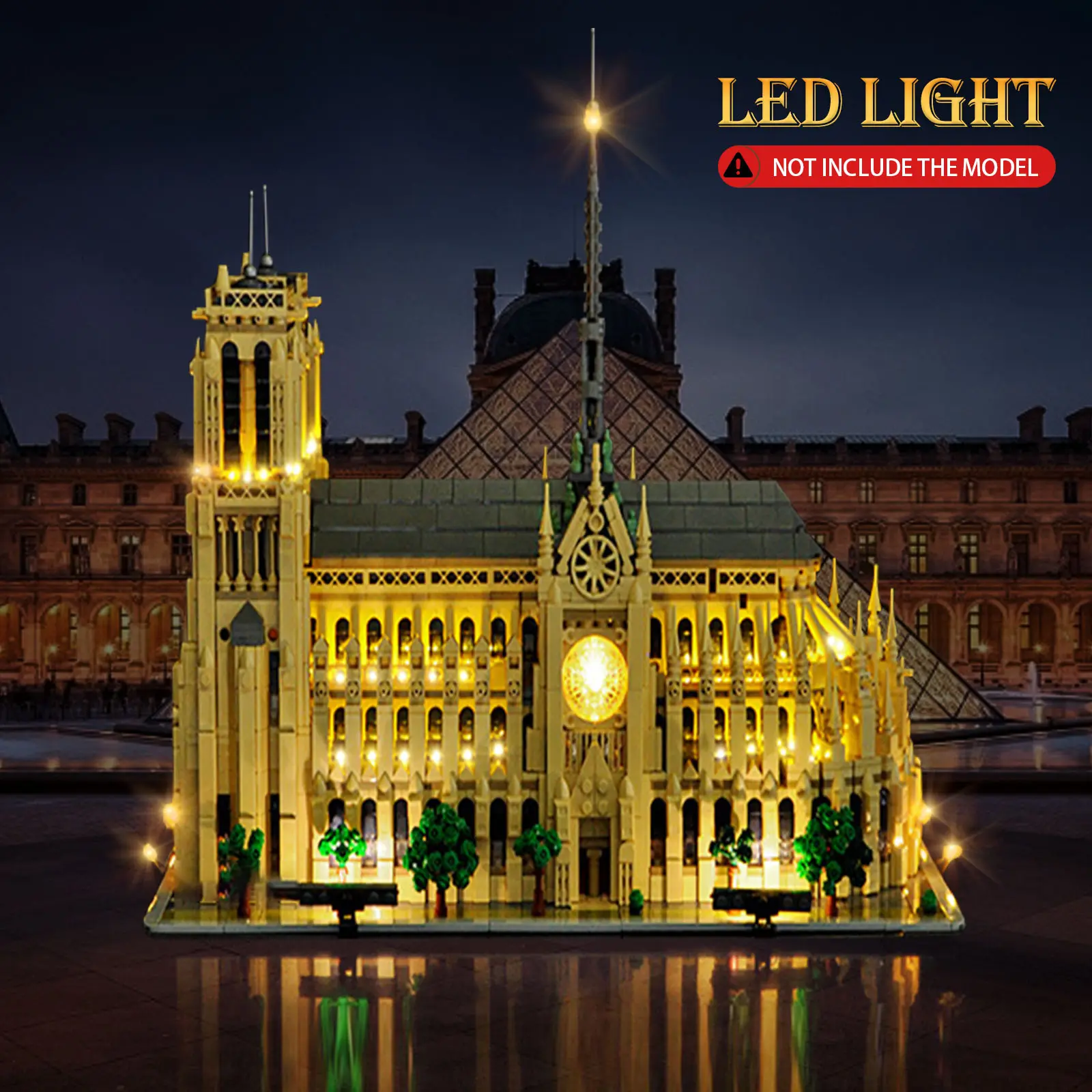This LED lighting kit is custom-designed specifically for the Notre-Dame de Paris model (21061). It adds a captivating glow to the model, beautifully highlighting every intricate detail—from the spires to the rose windows.