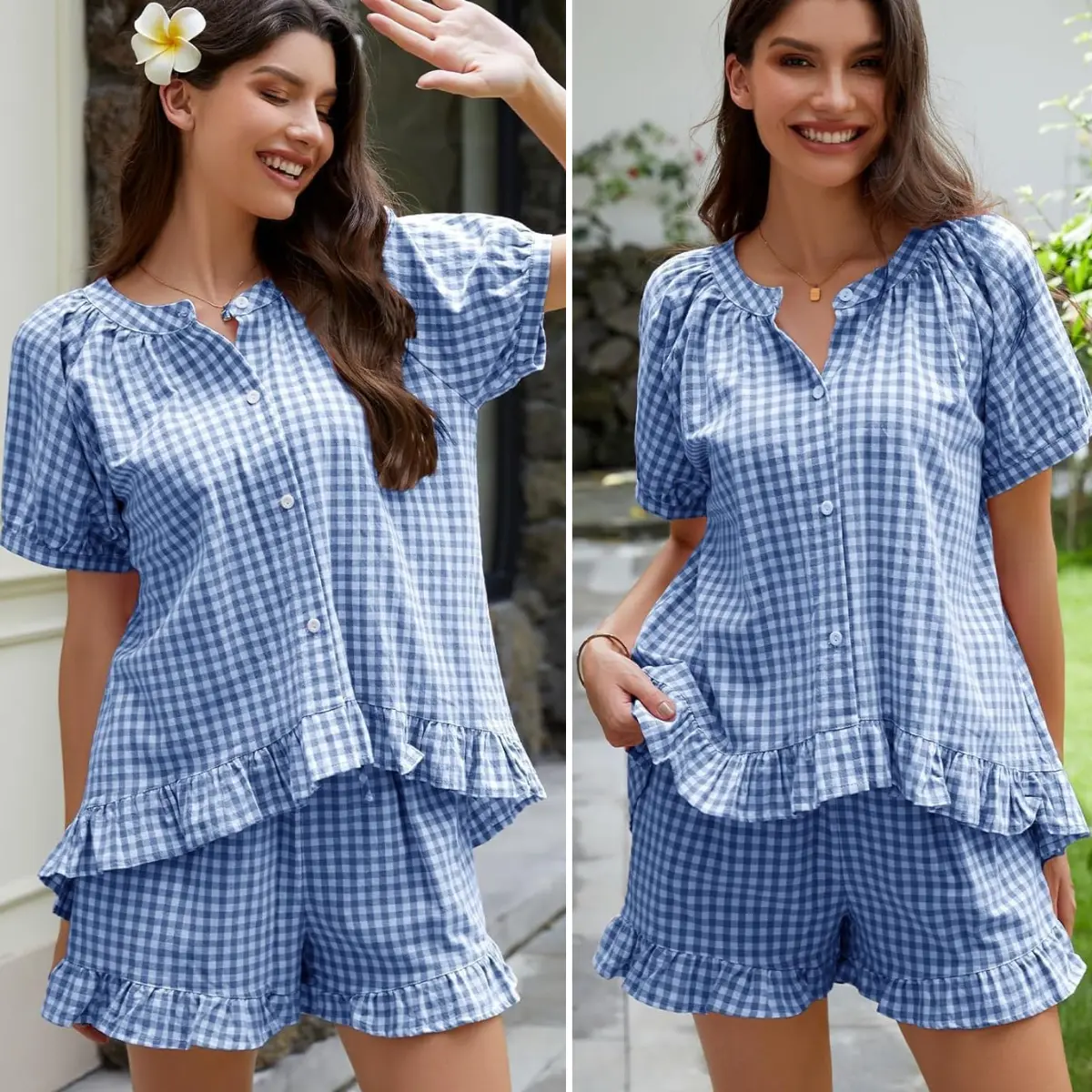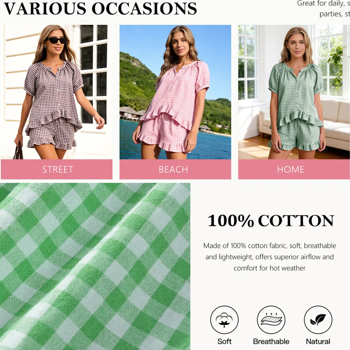 Made from 100% cotton fabric, this gingham set is super soft, lightweight, and breathable — perfect for hot weather, sensitive skin, and all-night comfort. Keeps you cool and cozy all day long.