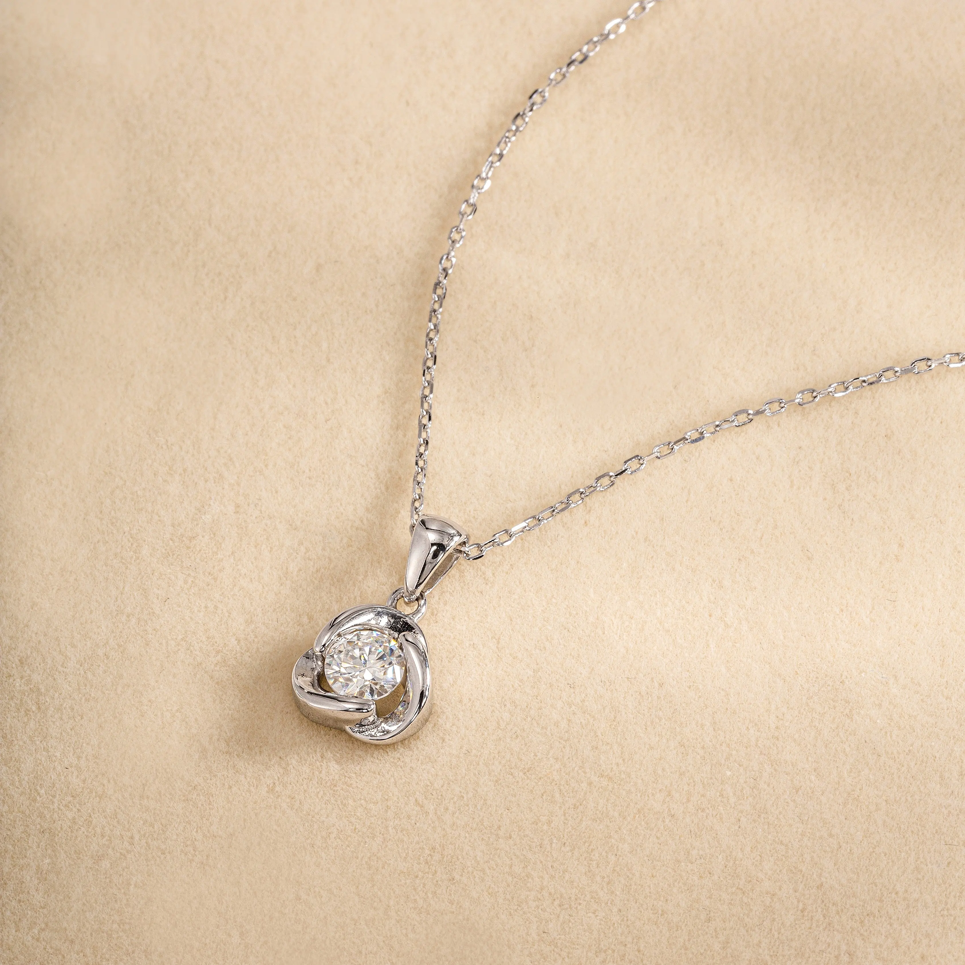 Elegant Love, Everyday Shine – Heart Knot Moissanite Necklace