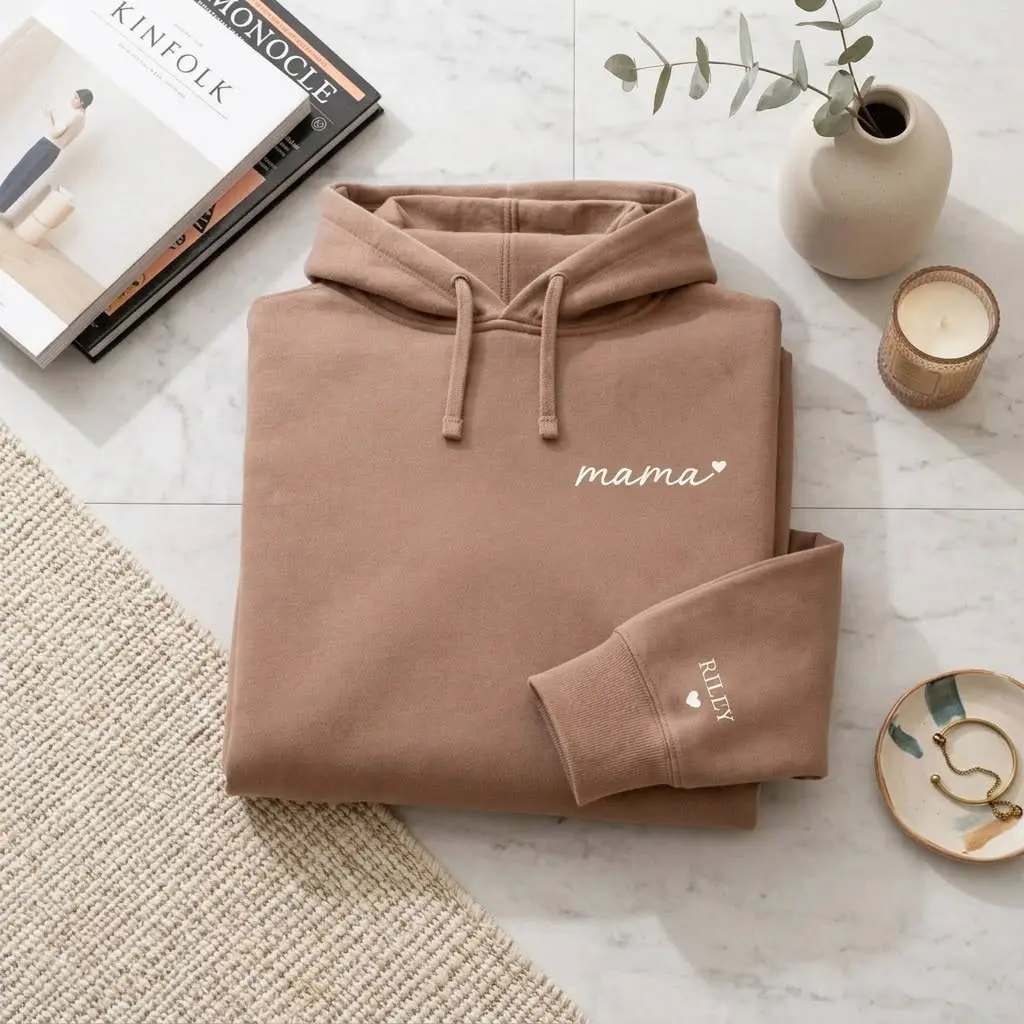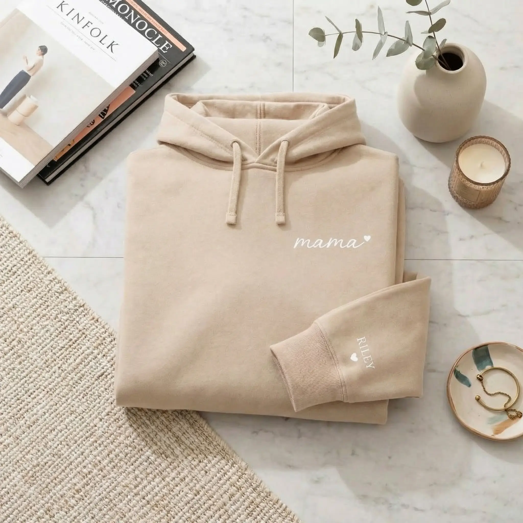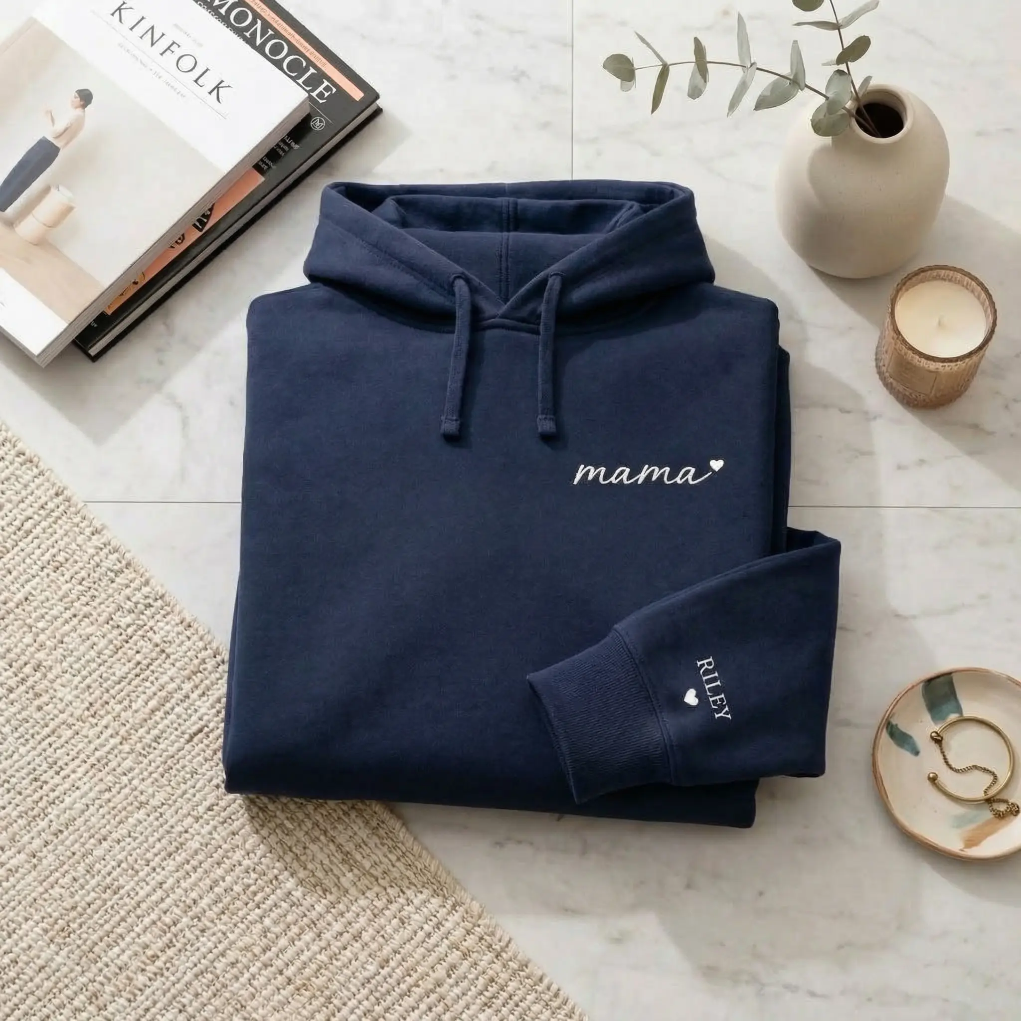 Embroidered Personalised Mama Sweatshirt, Mother's Day Gift, New Mum Gift, Wear my heart on sleeve, Custom Kids Names on Sleeve Jumper