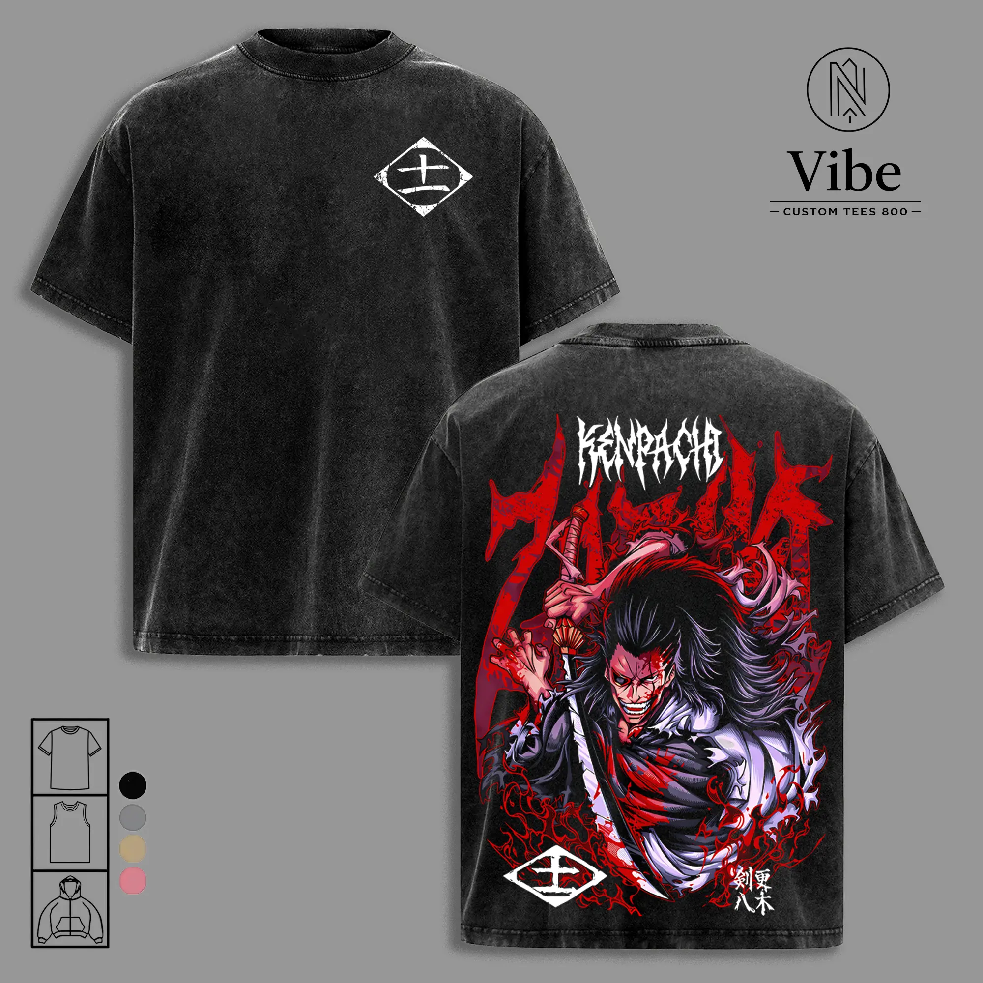 5. Kenpachi Zaraki Shirt, Tank Top - Bleach Vintage Clothing Anime T-Shirt | Oversized Fit | Heavyweight Cotton Graphic Tee | Unisex Anime Streetwear Top | Gift for Anime Fans