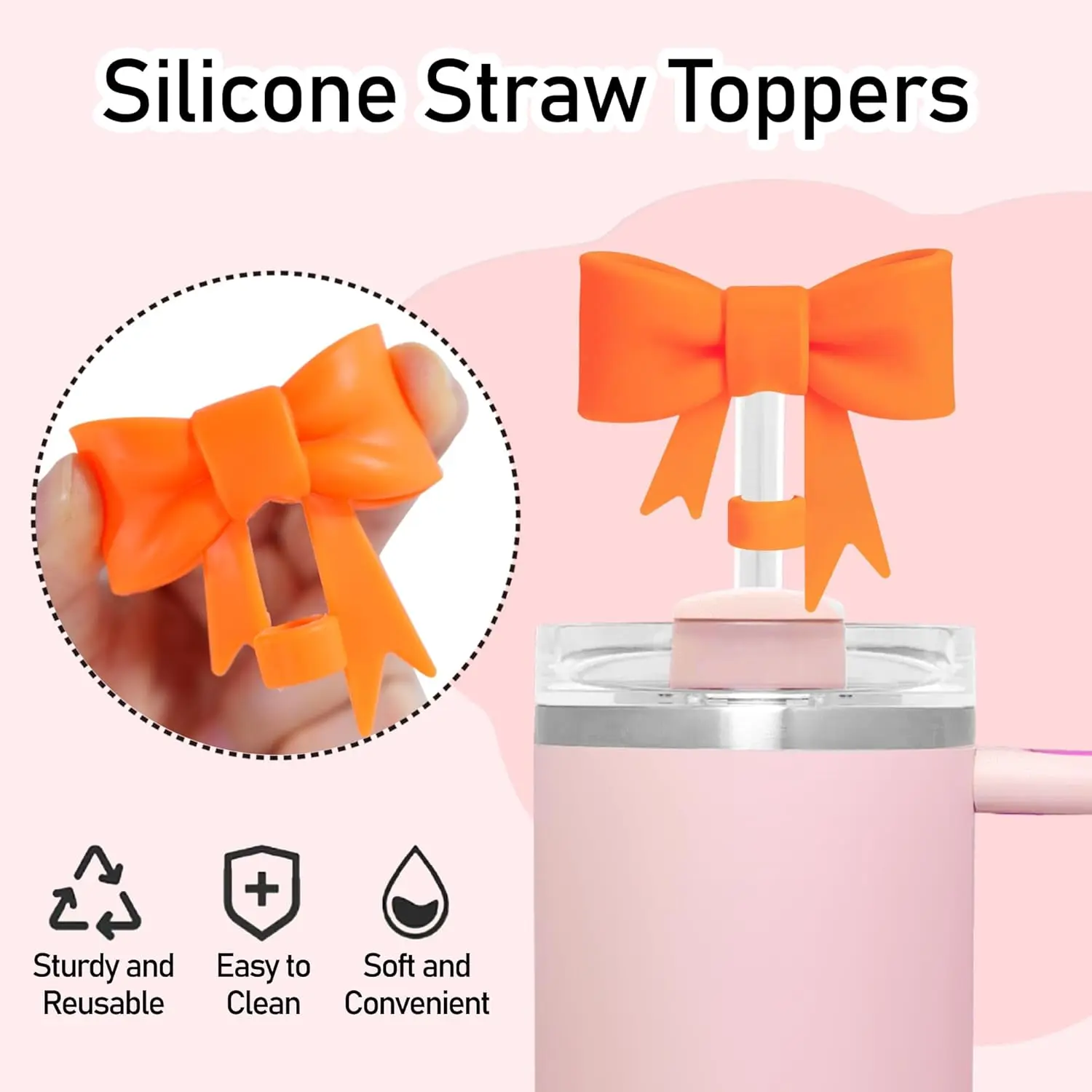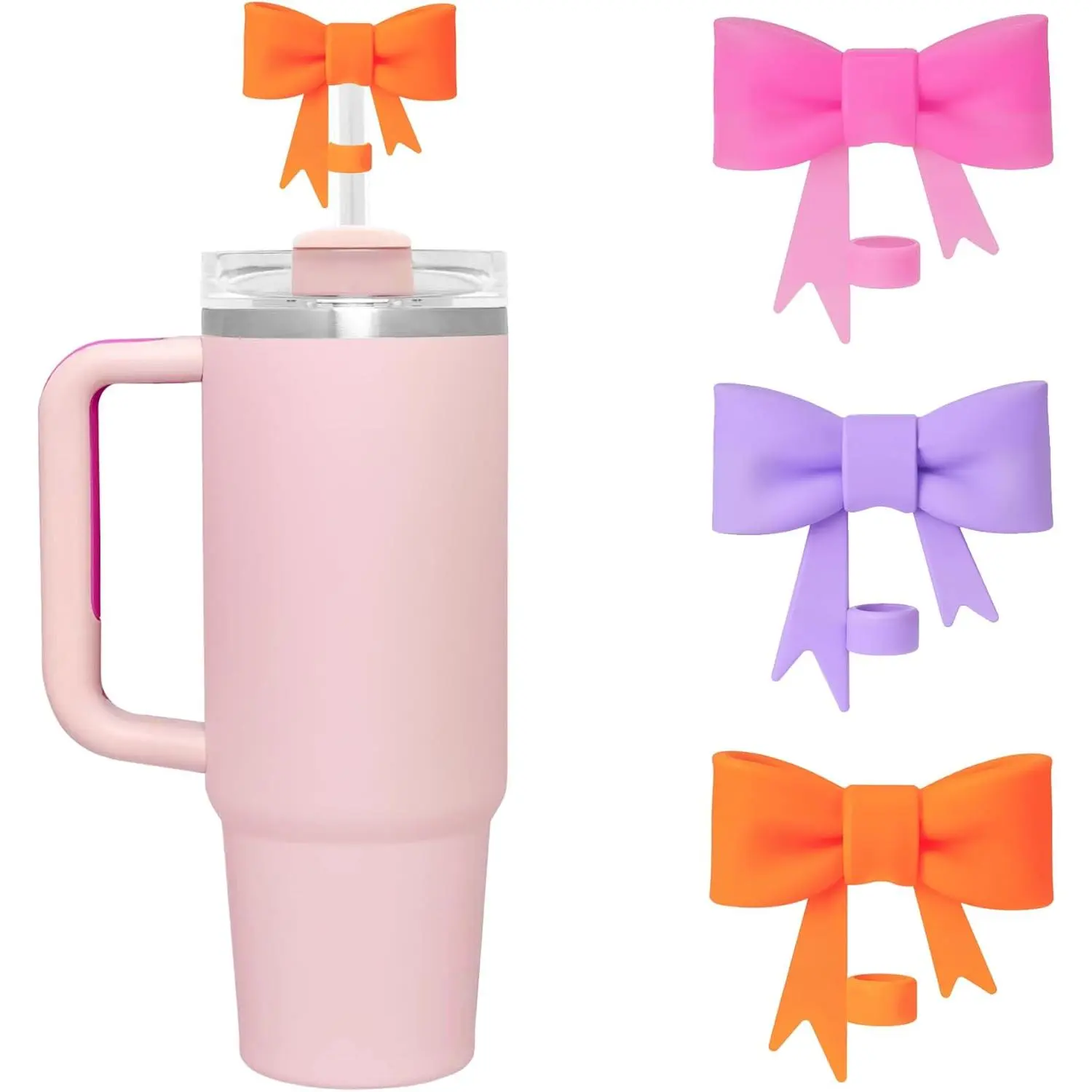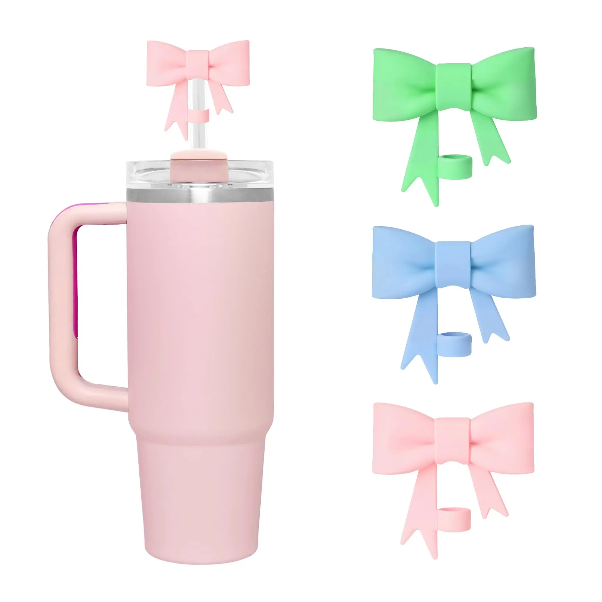 3 Pcs Bow Straw Covers Cap Toppers Compatible for 40 oz Stanley Tumbler Cups,Reusable Cute Silicone Straw Lids Tips Protectors(Multi-color A)