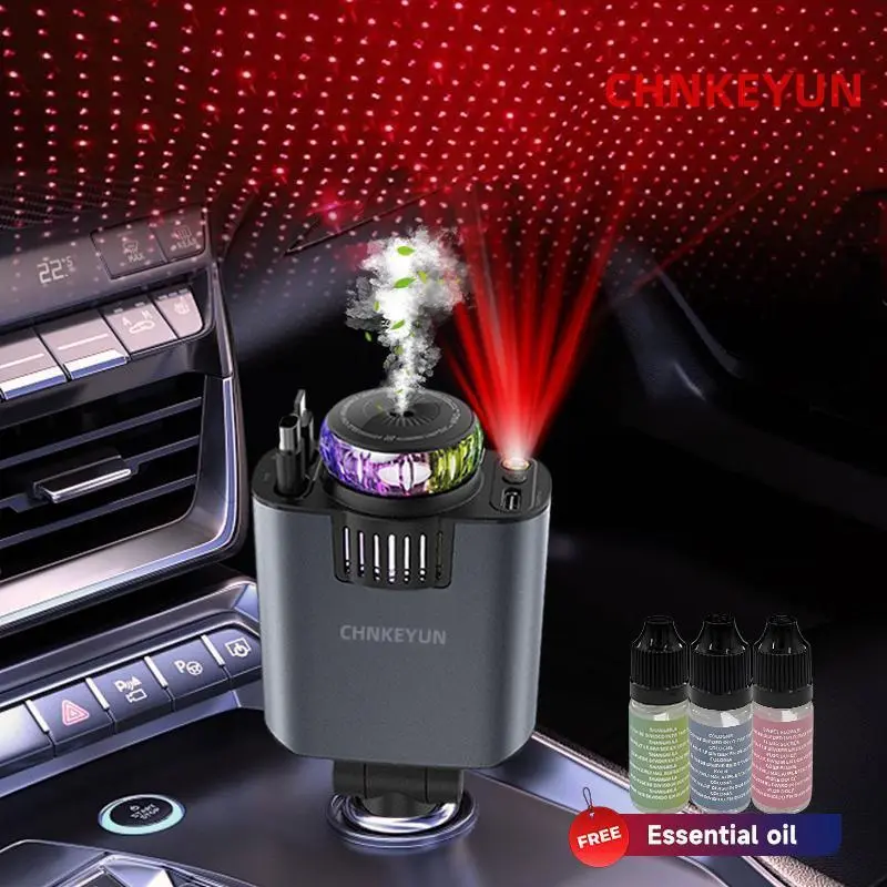 4-in-1 Car Roof Super Fast Retractable Car Charger with Anti-Tangle Retractable Cables, Dual Charge Port,Starlight In Roof Fast Charging Adapter -Automotive car charger starlight led charger No aromatherapy