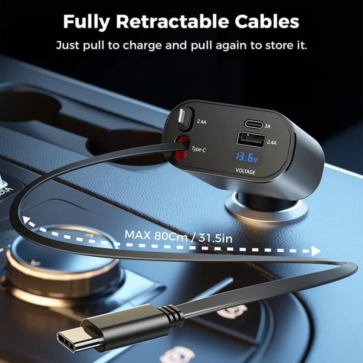 This car charger adapter is perfect for charging your phone while driving. The retractable cable and multiple USB ports make it a practical choice for car use.