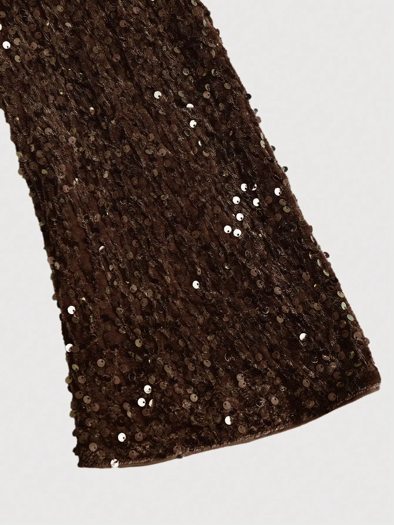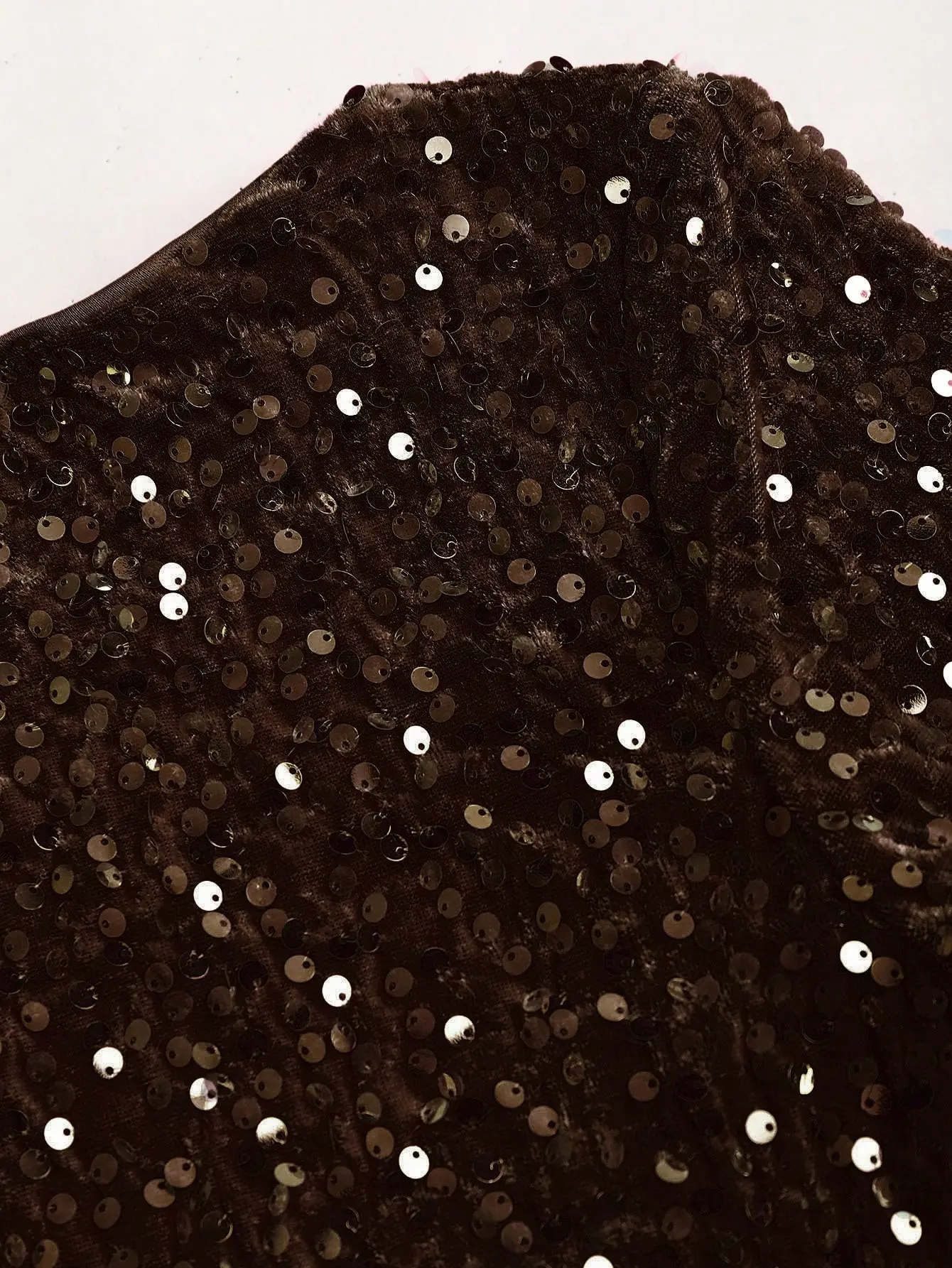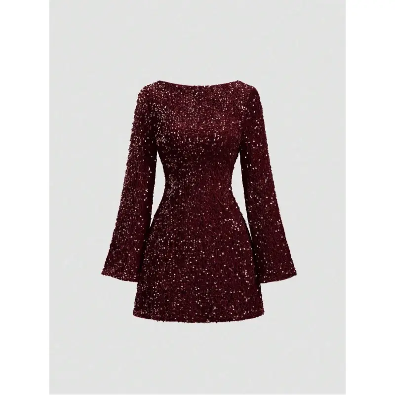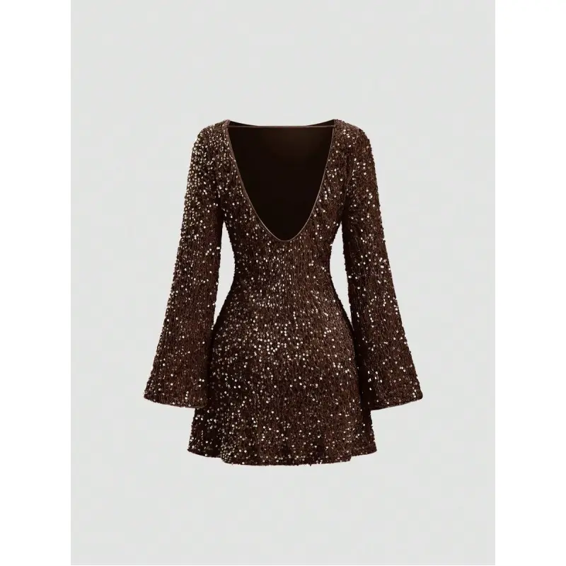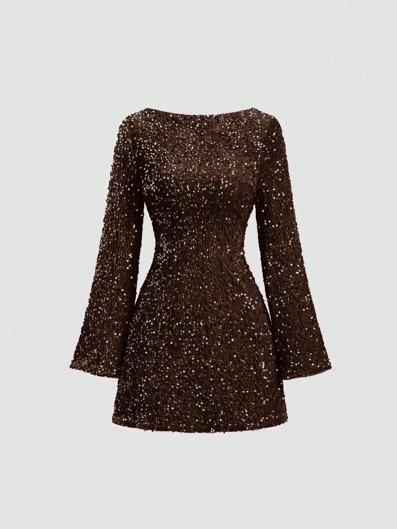 Women's Sequin Bodycon Dress Fall Winter Velvet Warm Long Sleeve Crew Neck Sexy Backless Glitter Slit Mini Dress,Backless, Contrast Sequin, Zipper,A Line