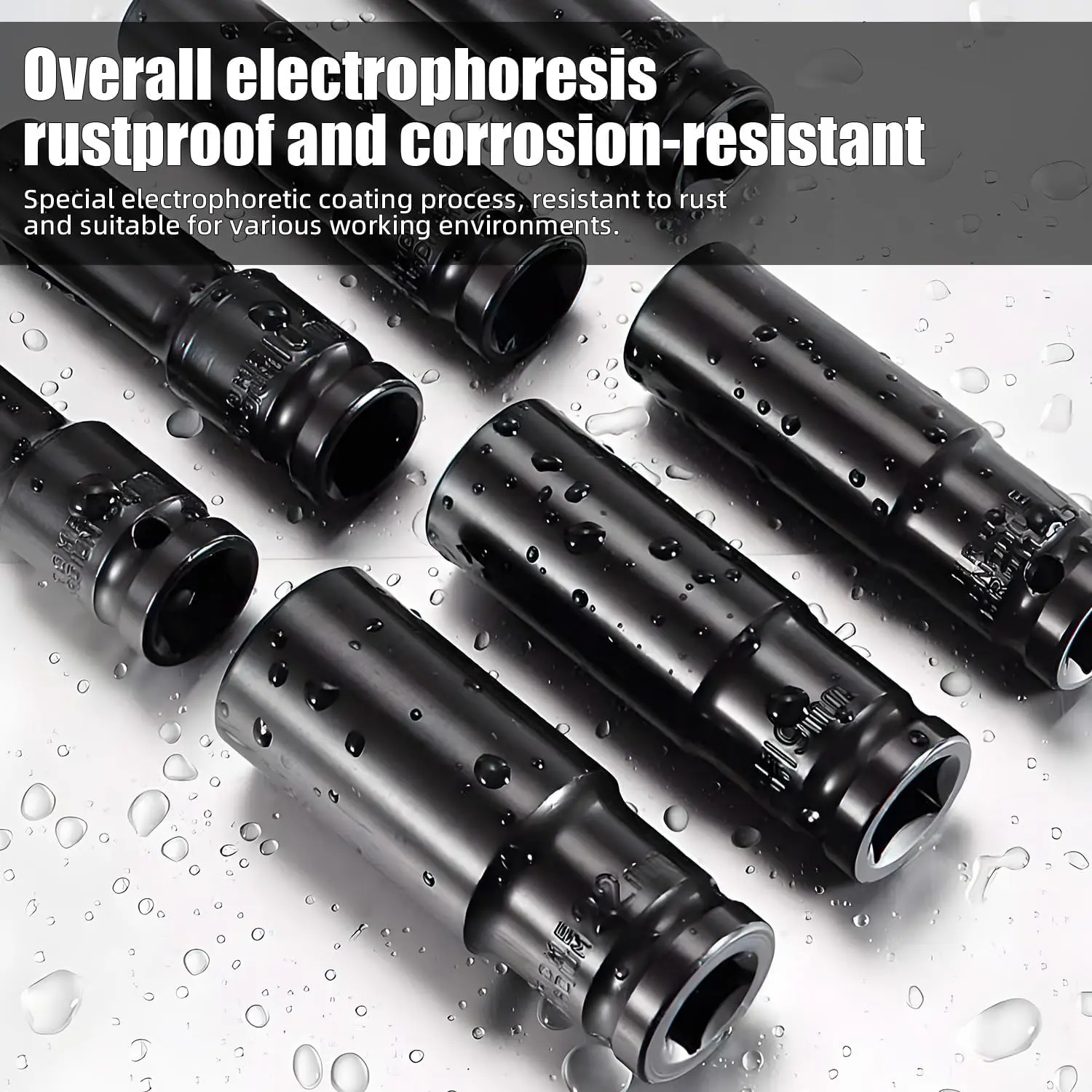 ·LONG-LASTING LASER MARKINGS: Rated HRC 45-52 for high-torque toughness, this socket set 1/2'' drive features subtle laser-etched markings that blend with the black finish. Designed to resist fading and wear far better than painted stamps, these identifiers ensure reliable sizing even after years of heavy cleaning